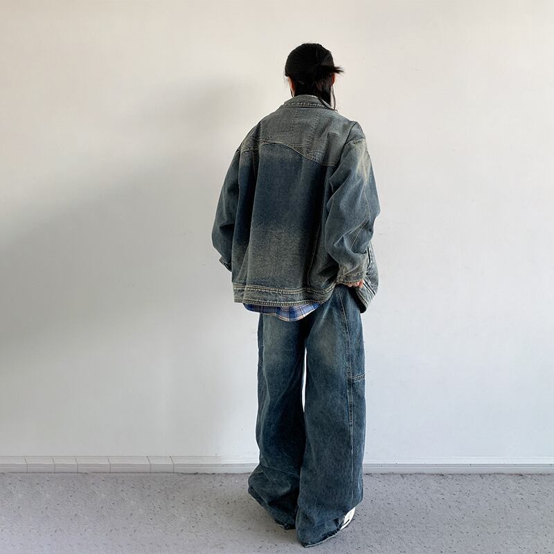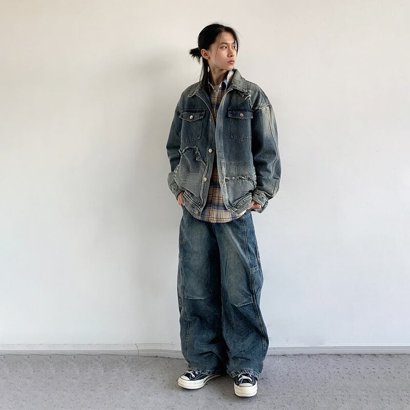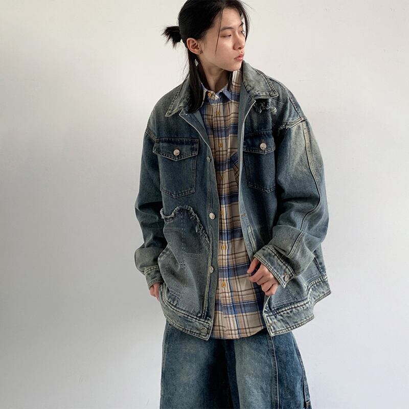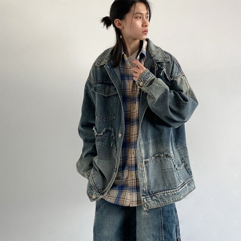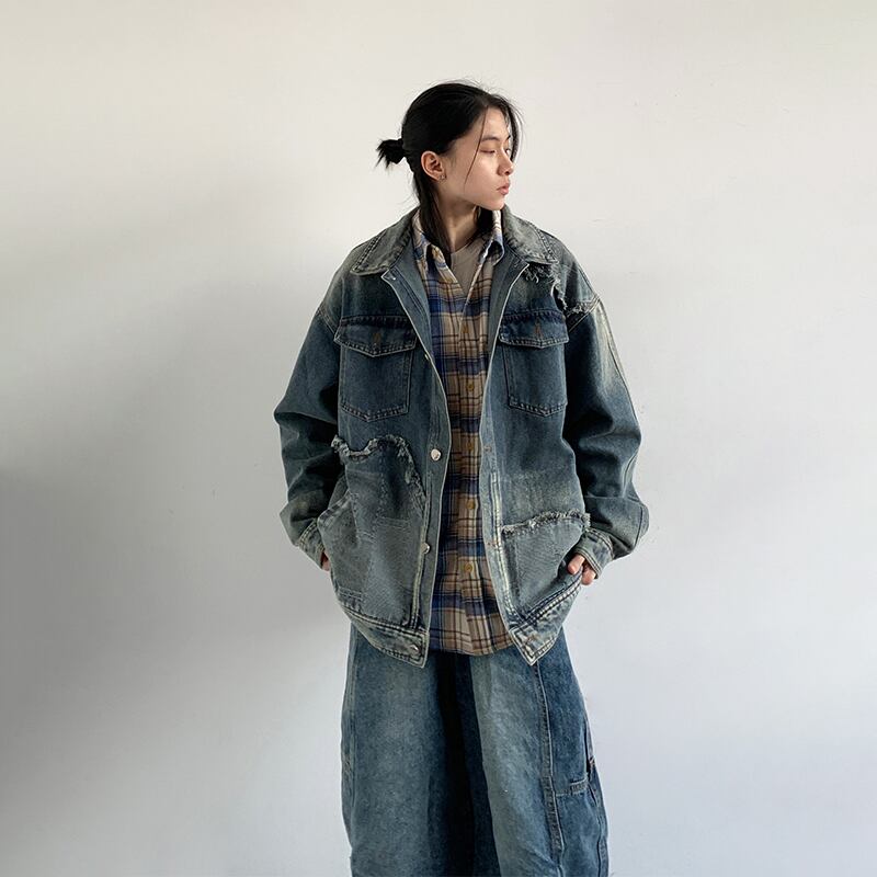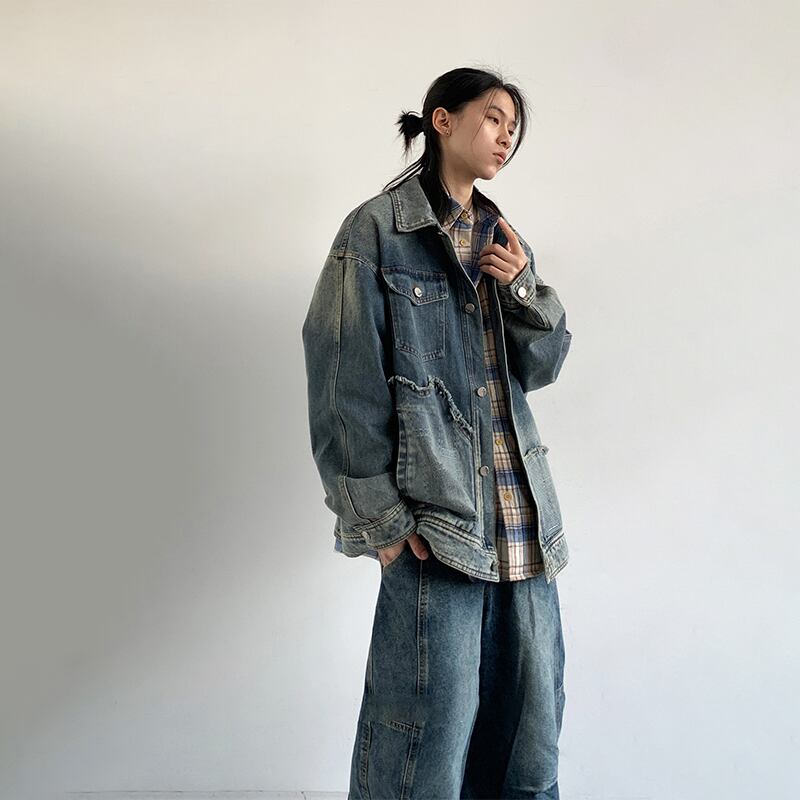 jiwuusドッキングデザインデニムジャケット