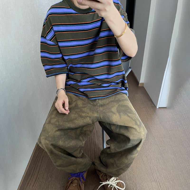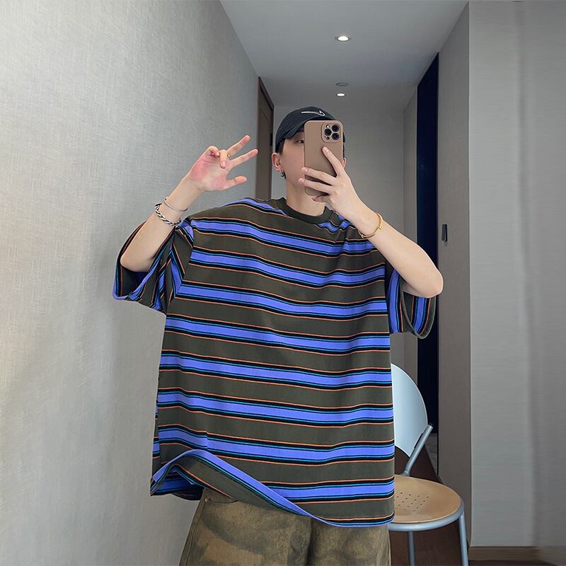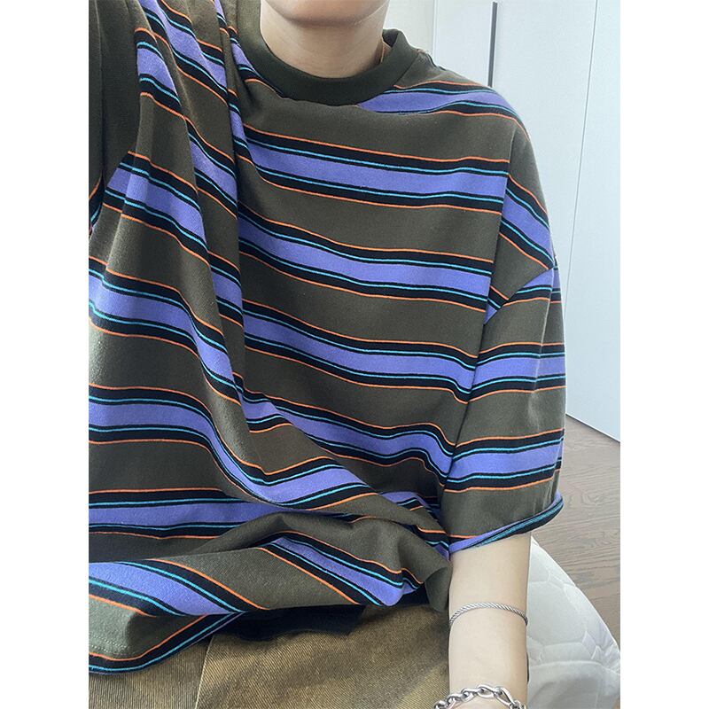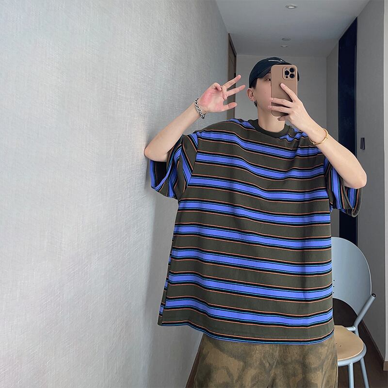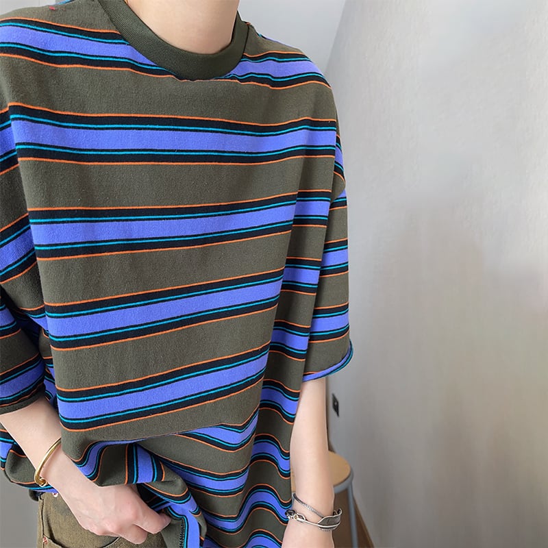 dannyandzeeボーダー柄オーバーサイズ半袖Tシャツ