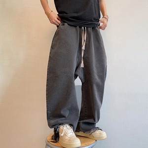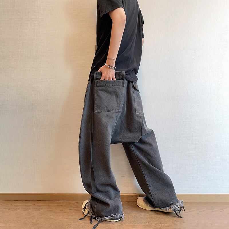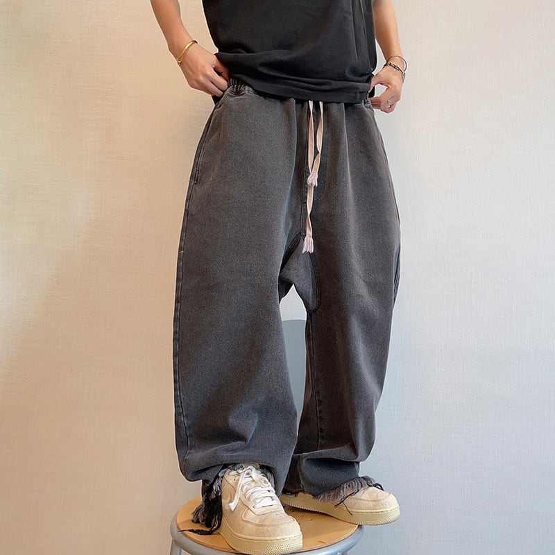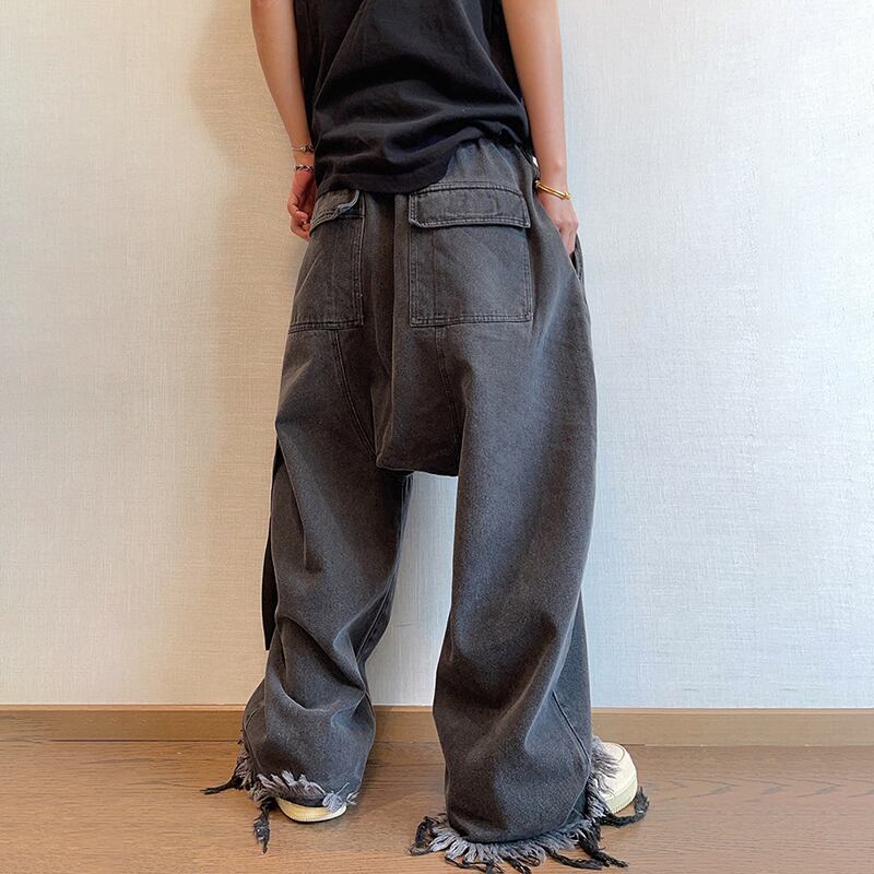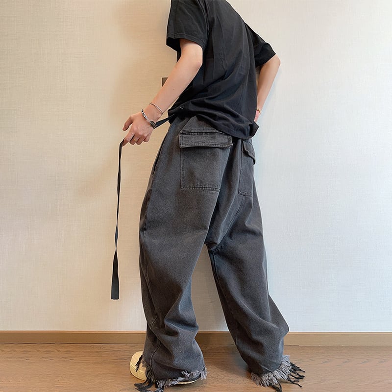 dannyandzeeウォッシュダークグレーフリンジデニムパンツ
