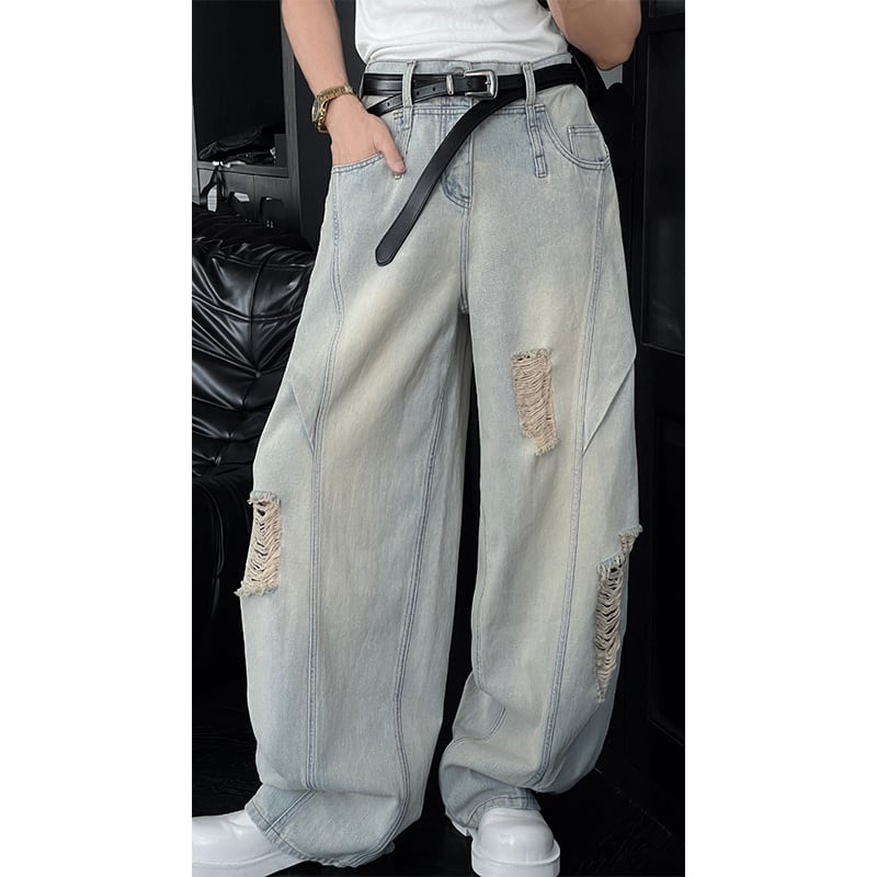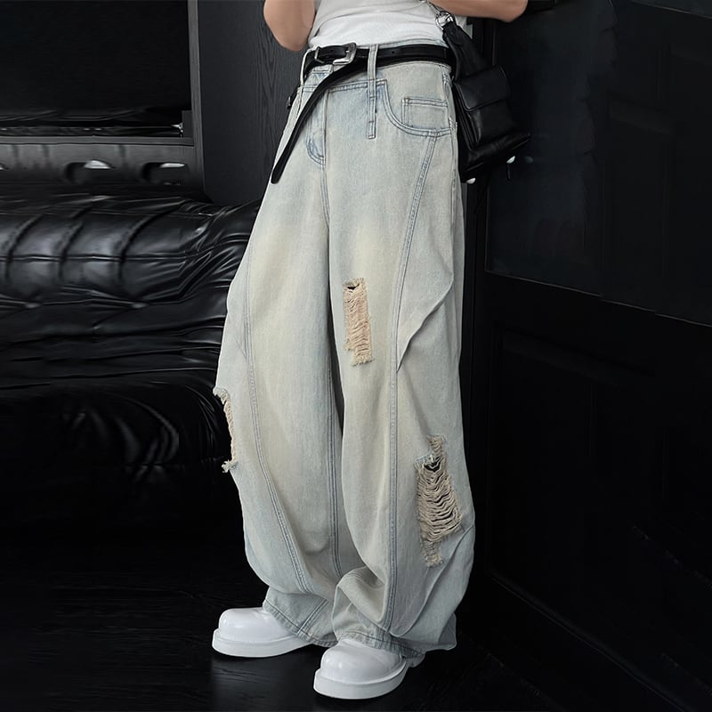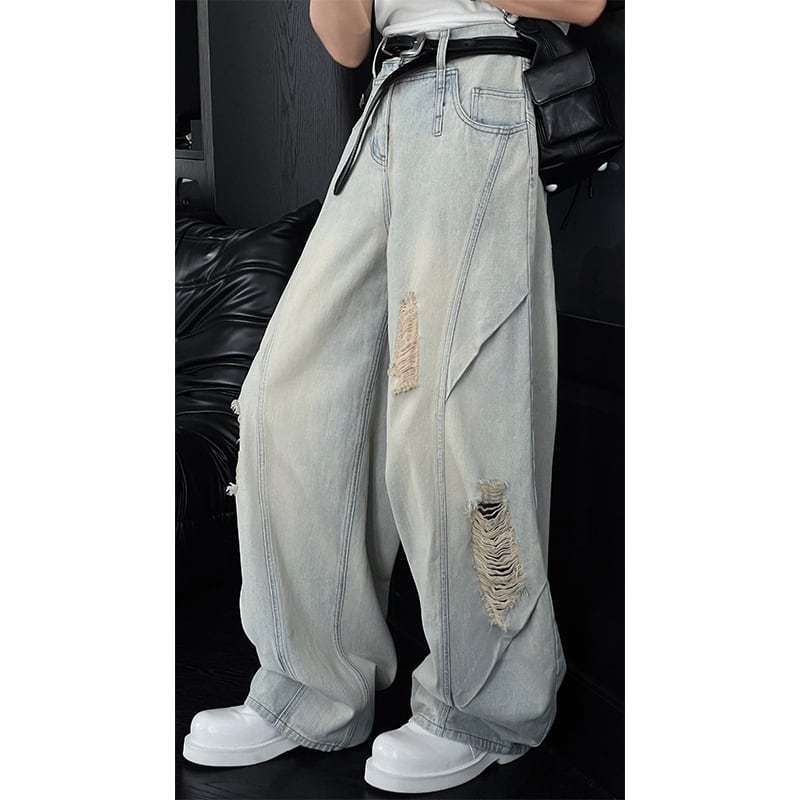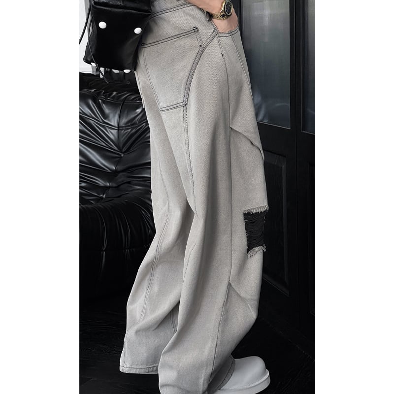 LDD全2色ウォッシュドダメージ加工デニムパンツ