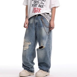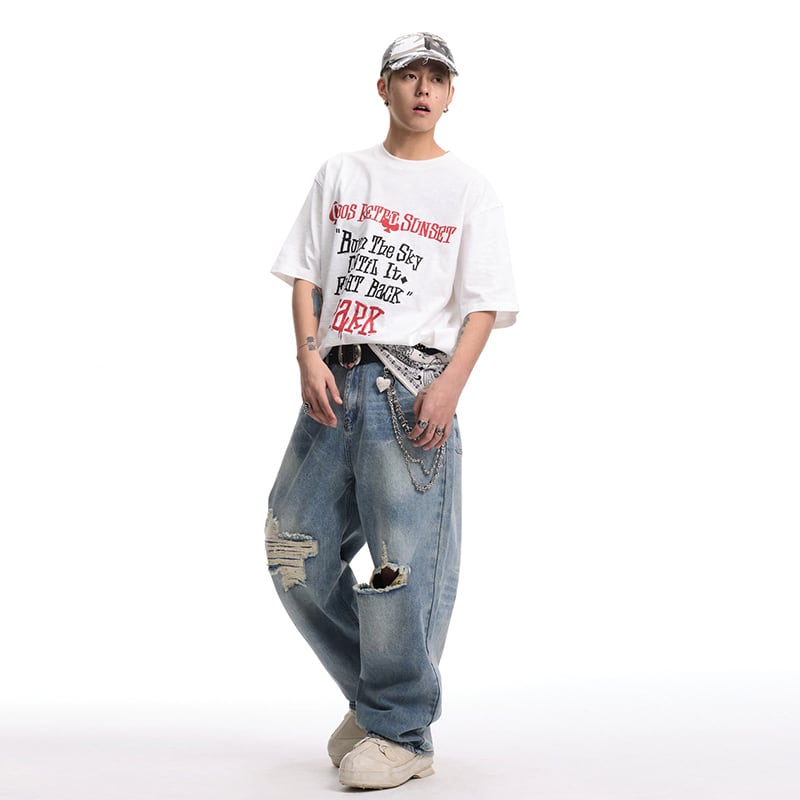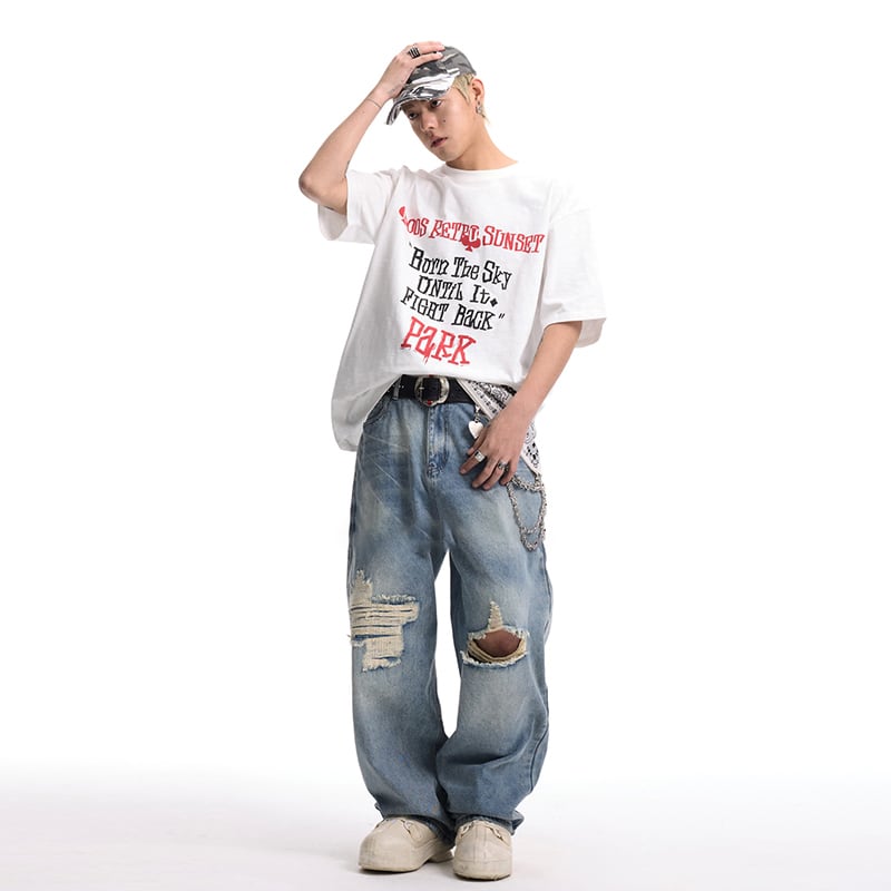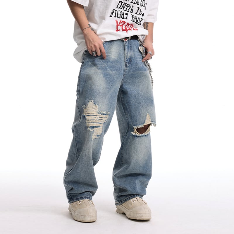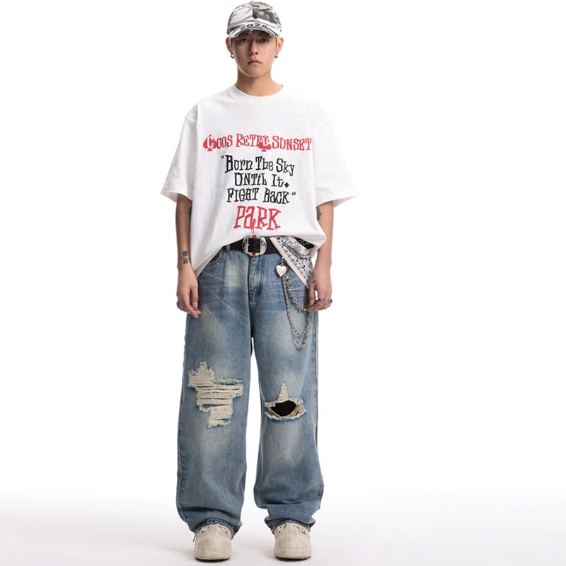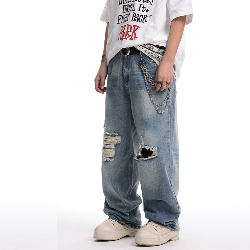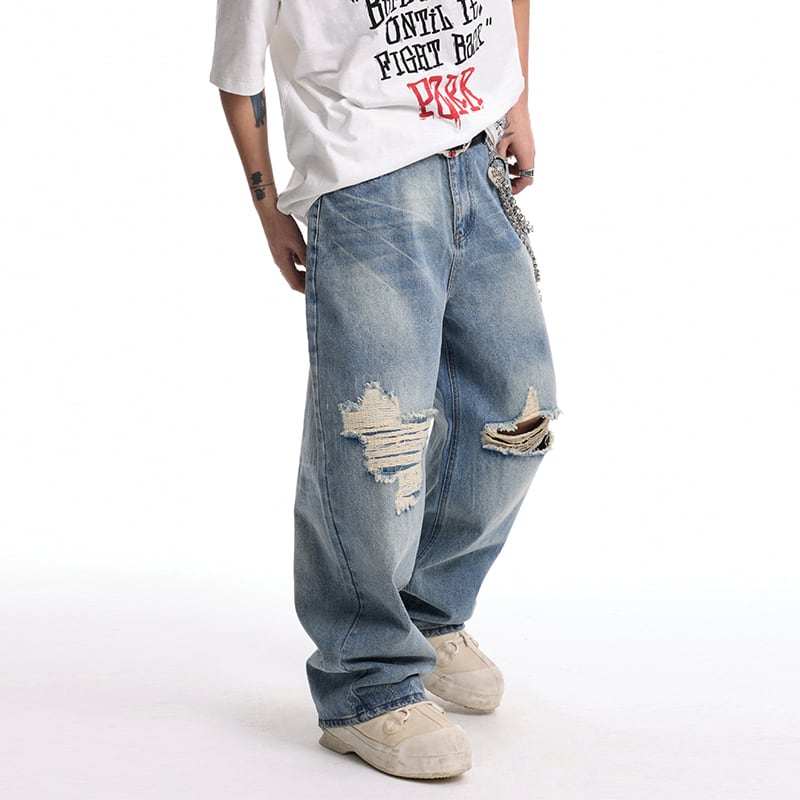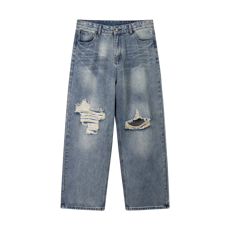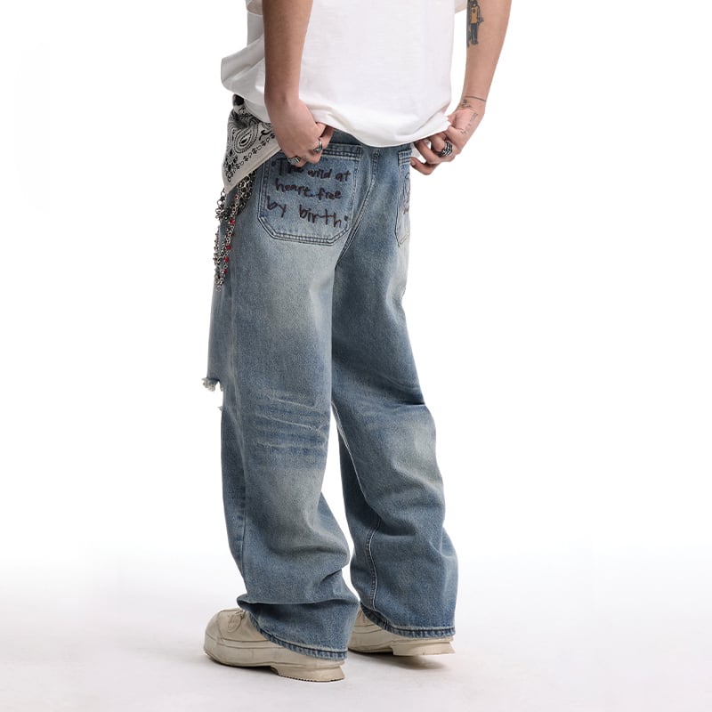 CoosRetroボヘミアンダメージワイドデニムパンツ