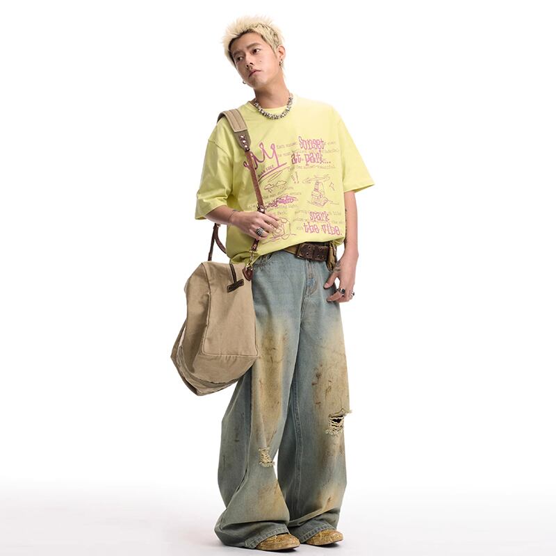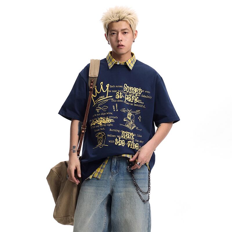 CoosRetro個性的ロゴプリント半袖Tシャツ