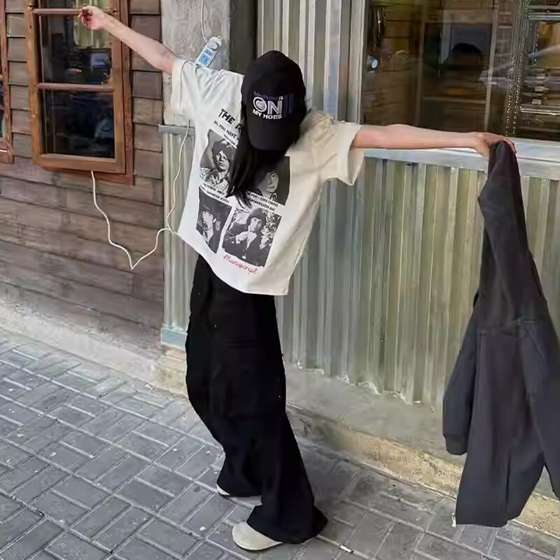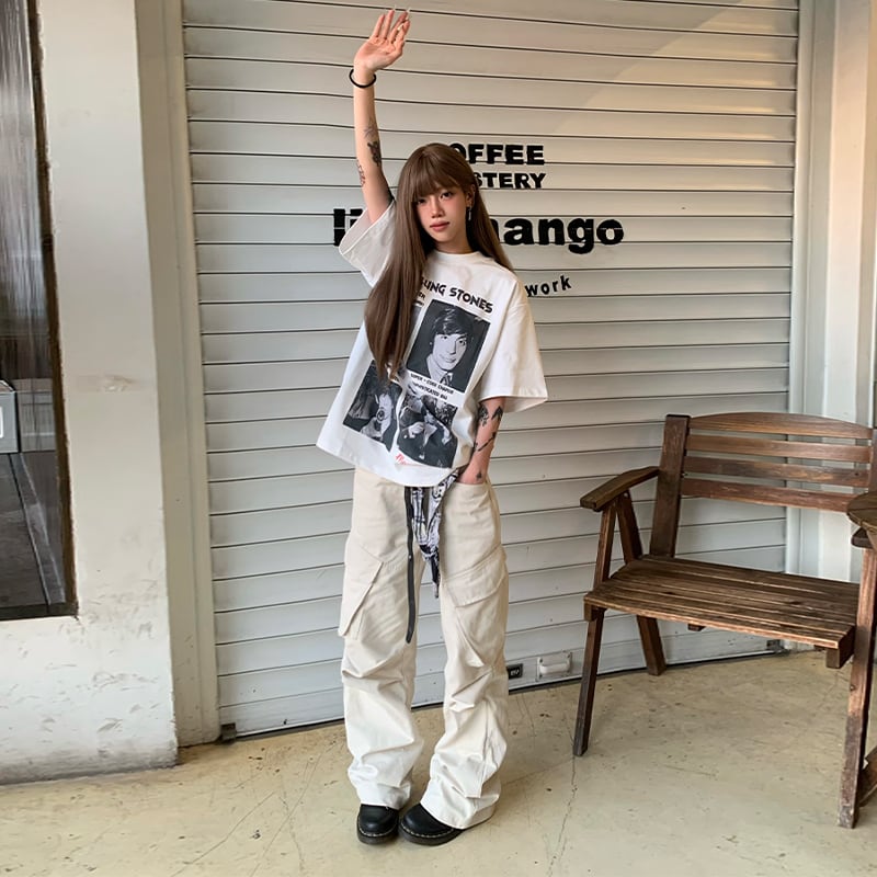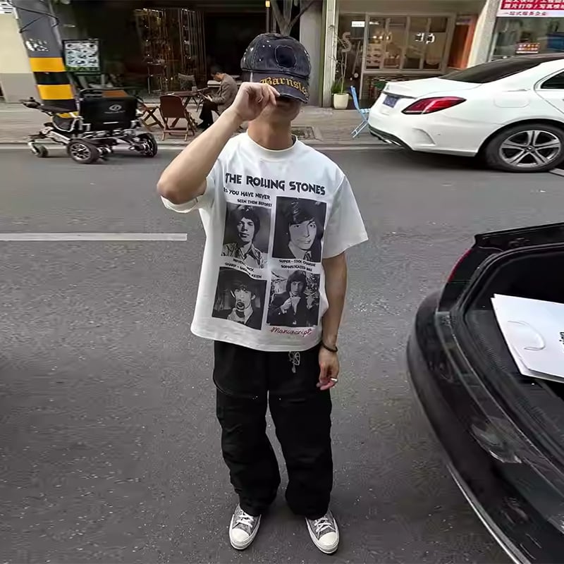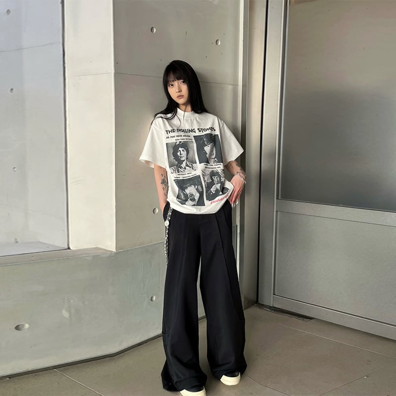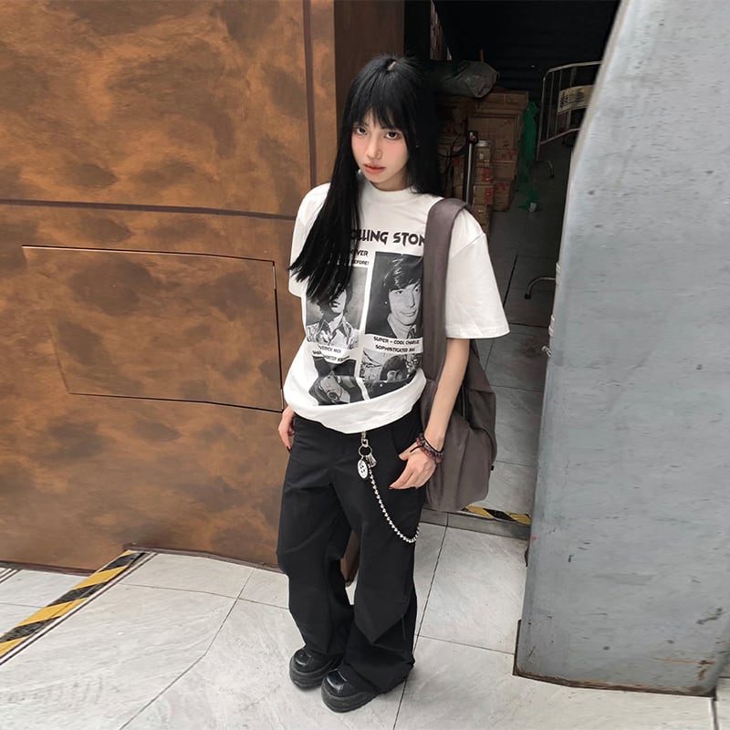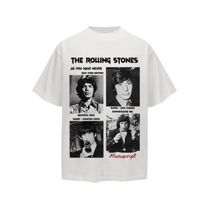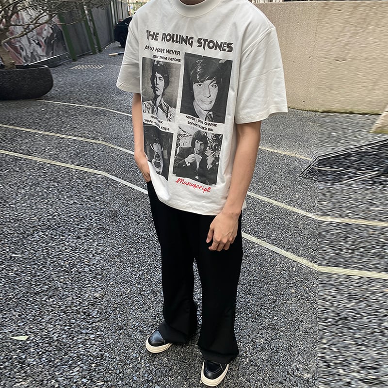 MANUSCRIPT全2色モノクロ人物バンドプリント半袖Tシャツ