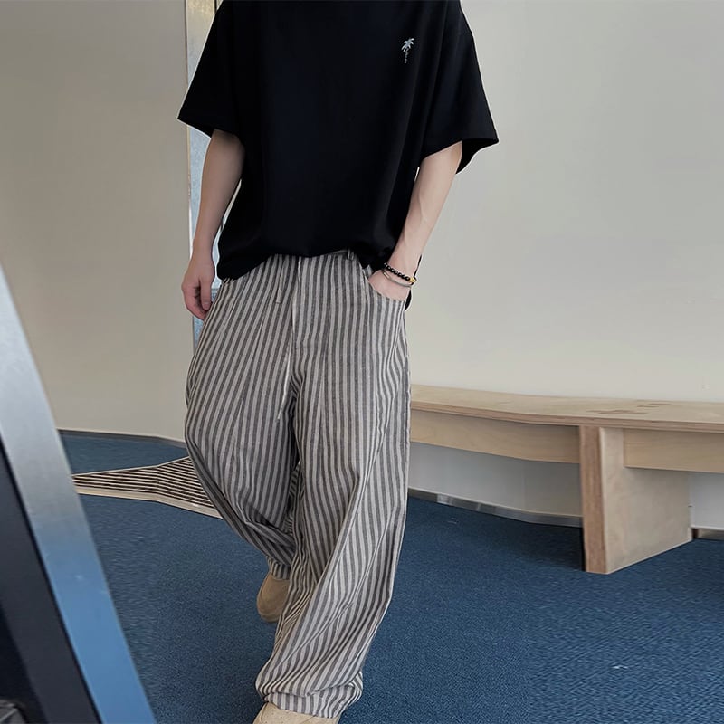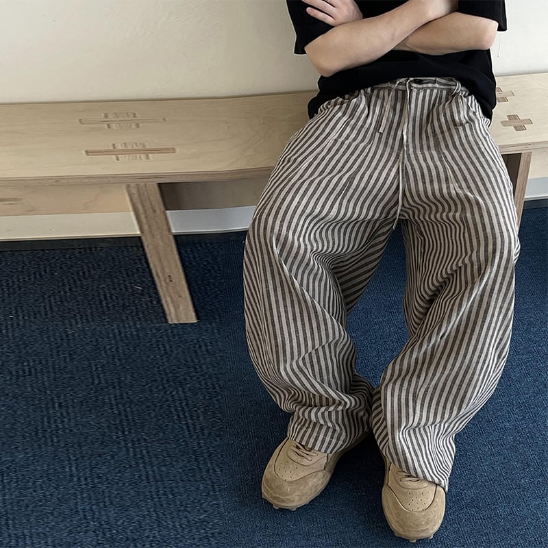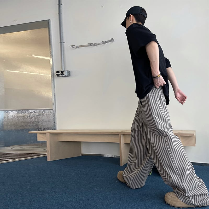 dannyandzeeゆったりシルエット縞模様ワイドパンツ