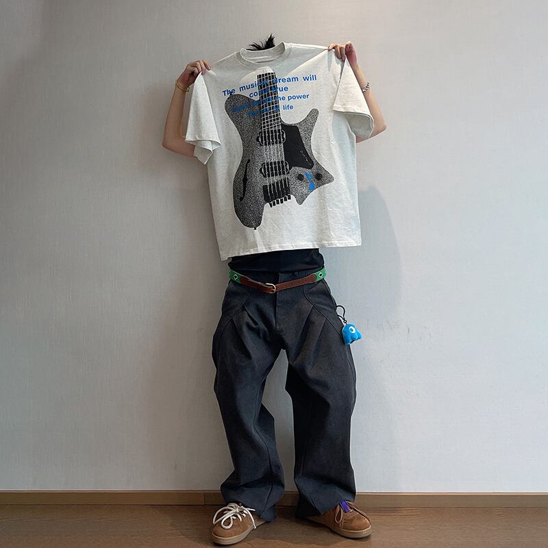 dannyandzeeロックギタープリント半袖Tシャツ