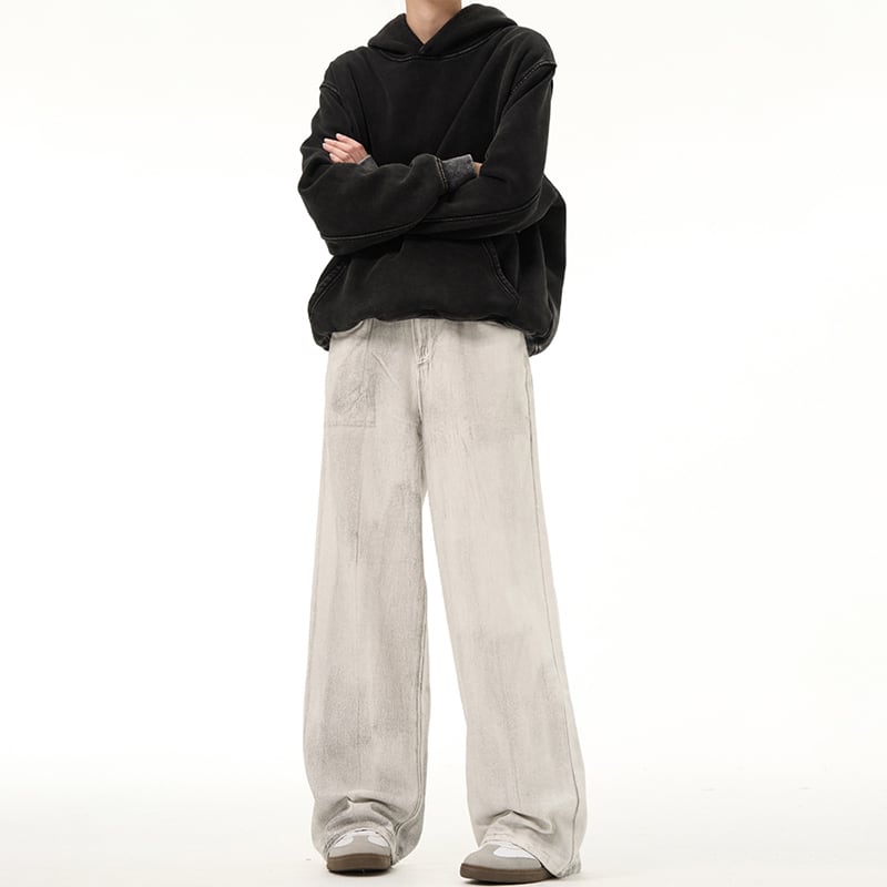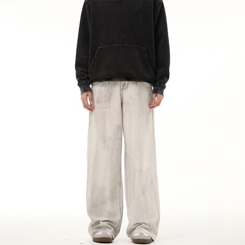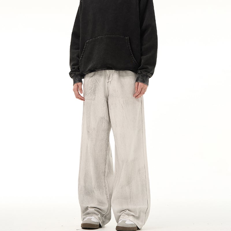 MADWITCH純白色落ち仕上げドレープ感デニムパンツ