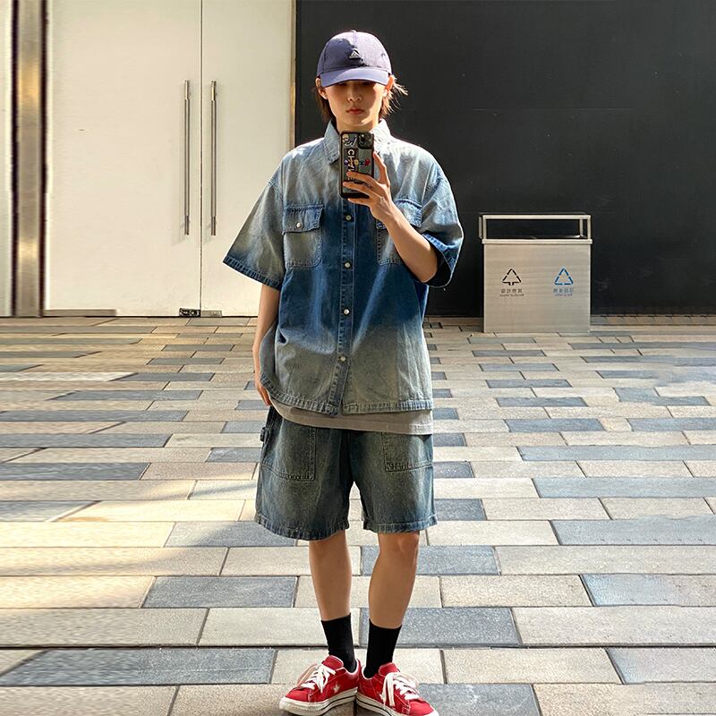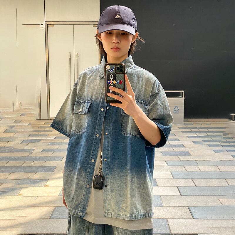 SECONDARY全2色グラデーション半袖デニムシャツ