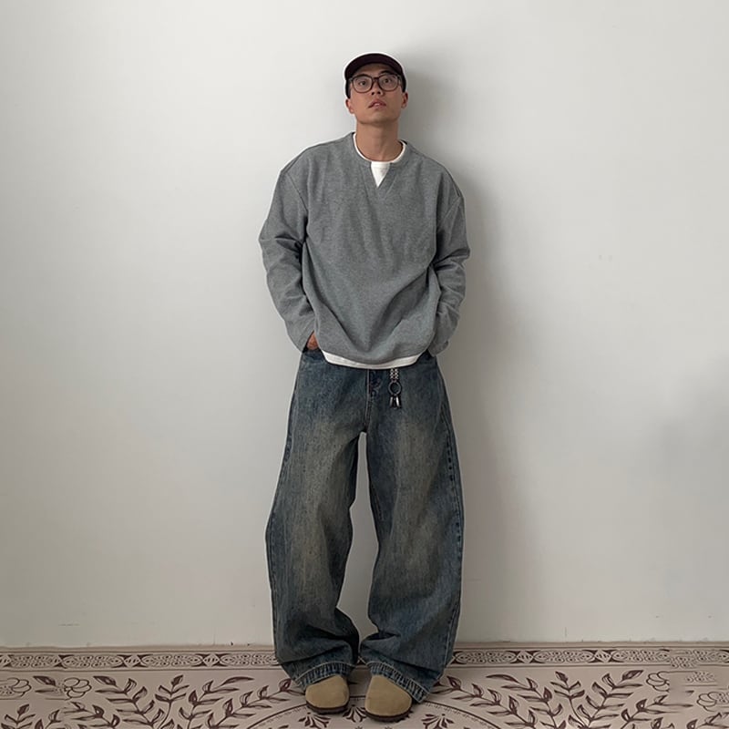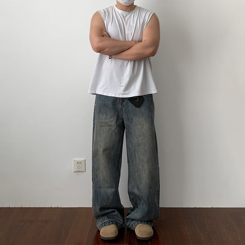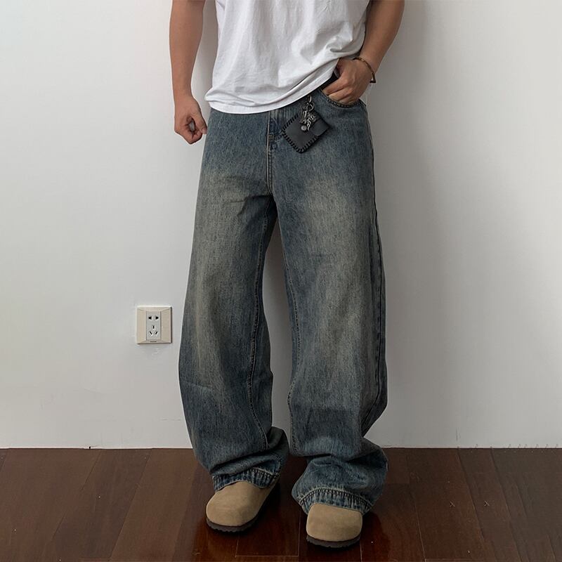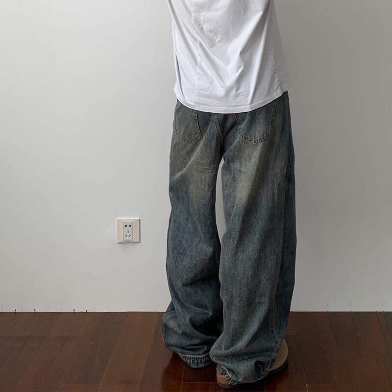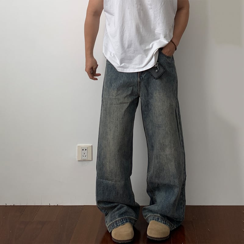 Daily 1ウォッシュ加工ワイドデニムストレートパンツ