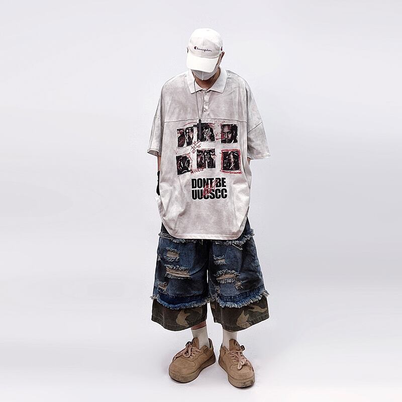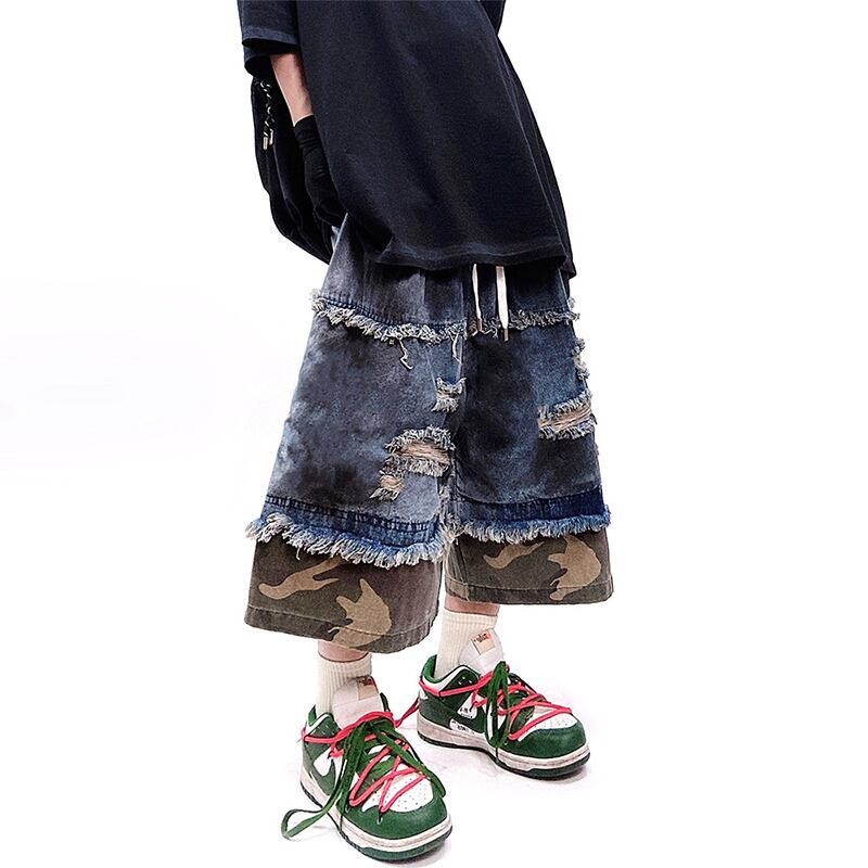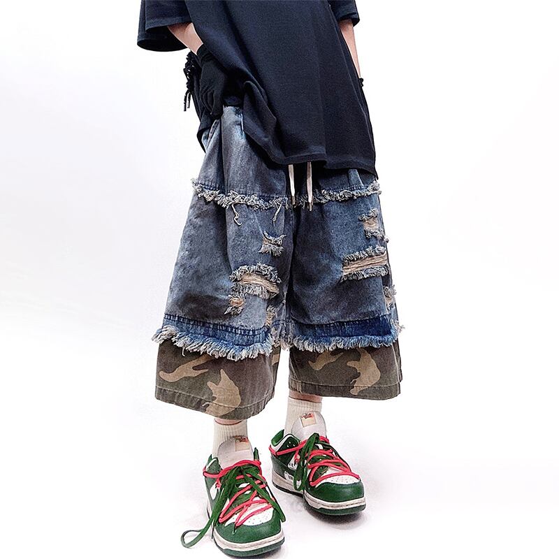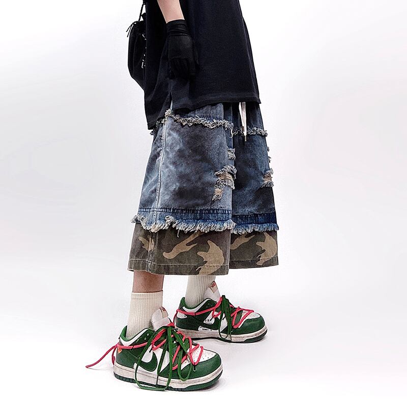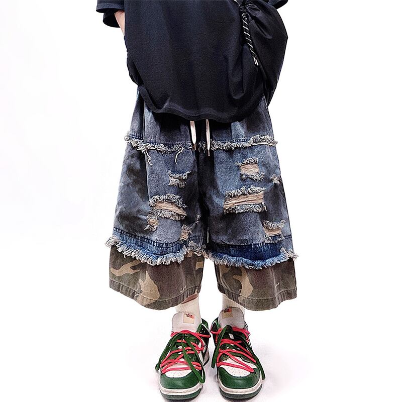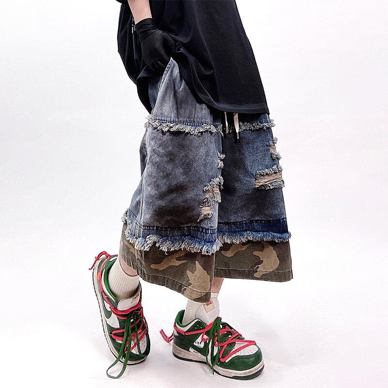 UUCSCCカモフラージュダメージ切り替えデニムハーフパンツ