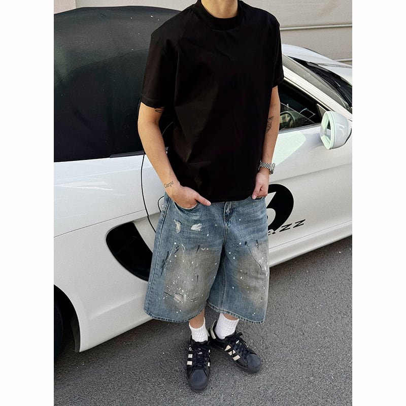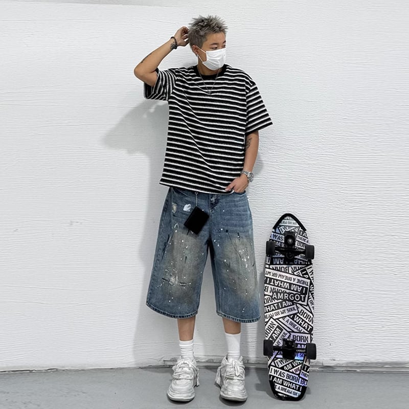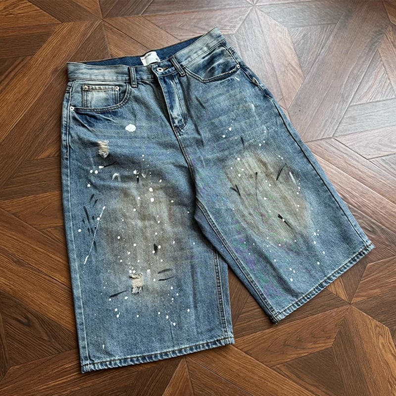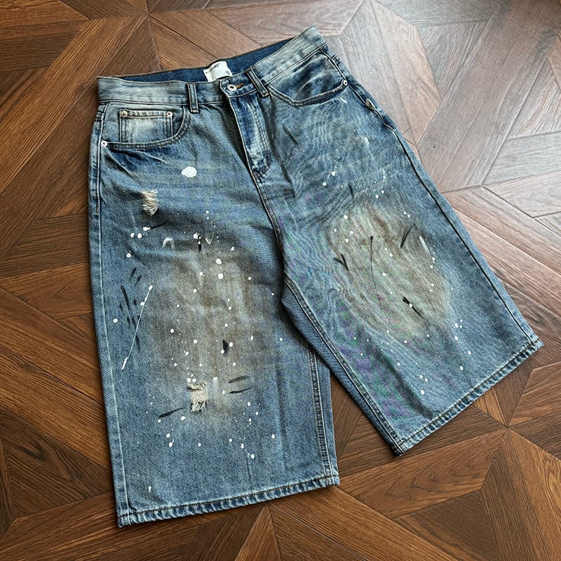 RCMANスプラッターデザインデニムガウチョパンツ