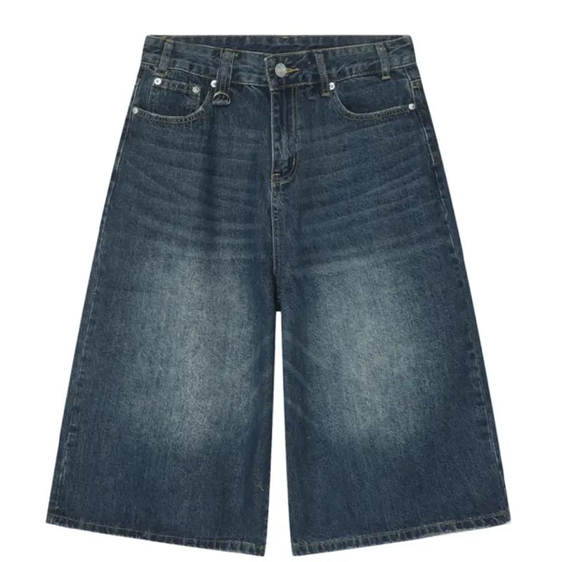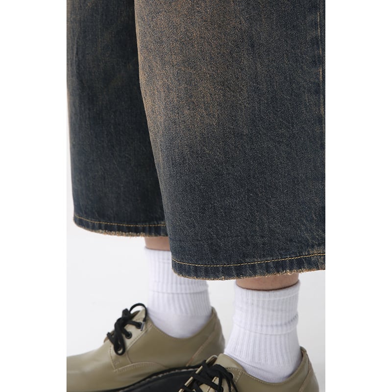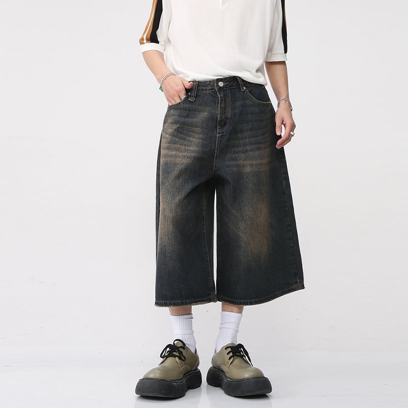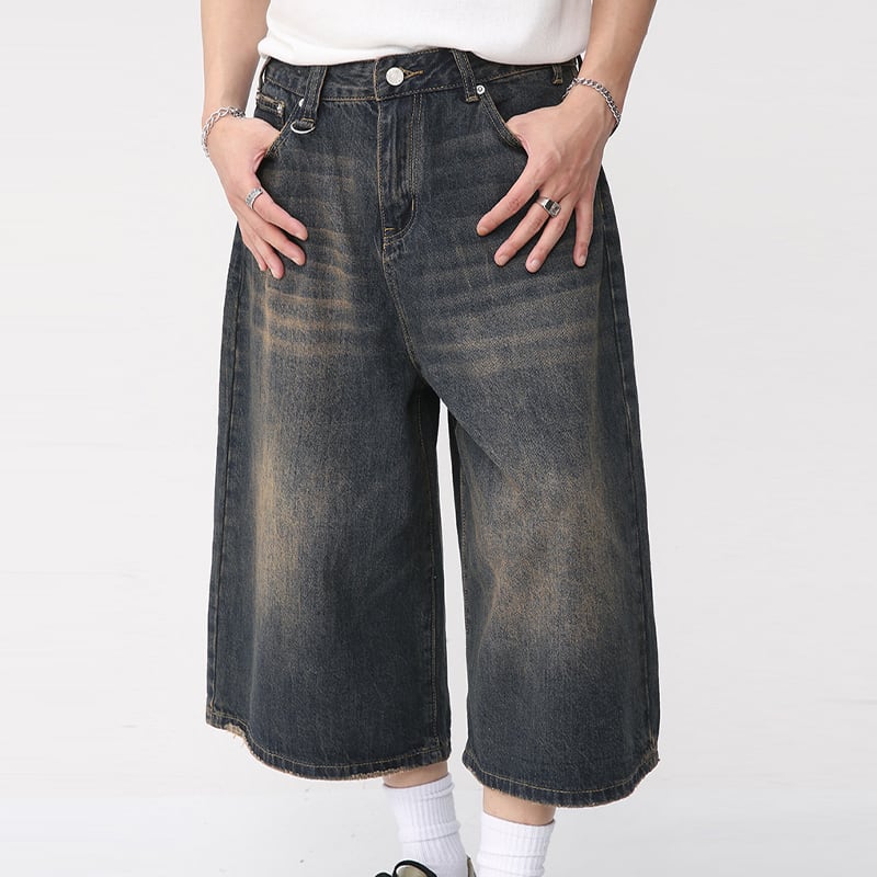 ゆったりデニムヴィンテージルーズハーフパンツ