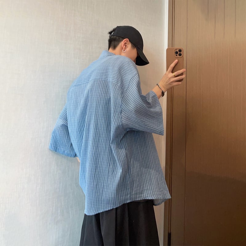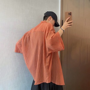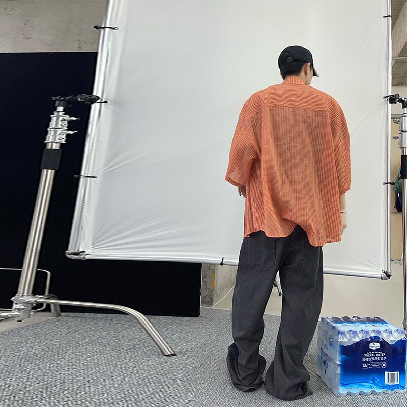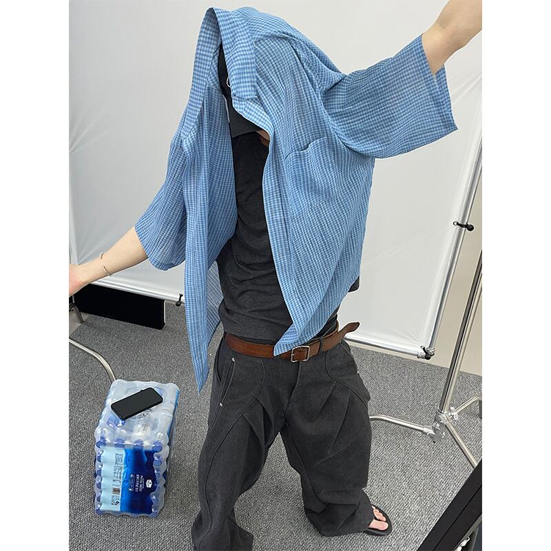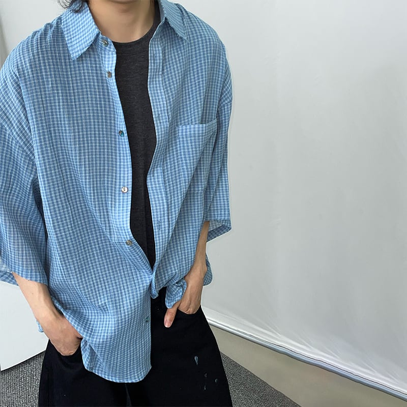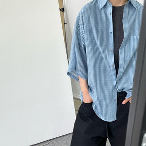 dannyandzeeリラックス薄手格子柄半袖シャツ