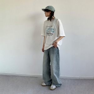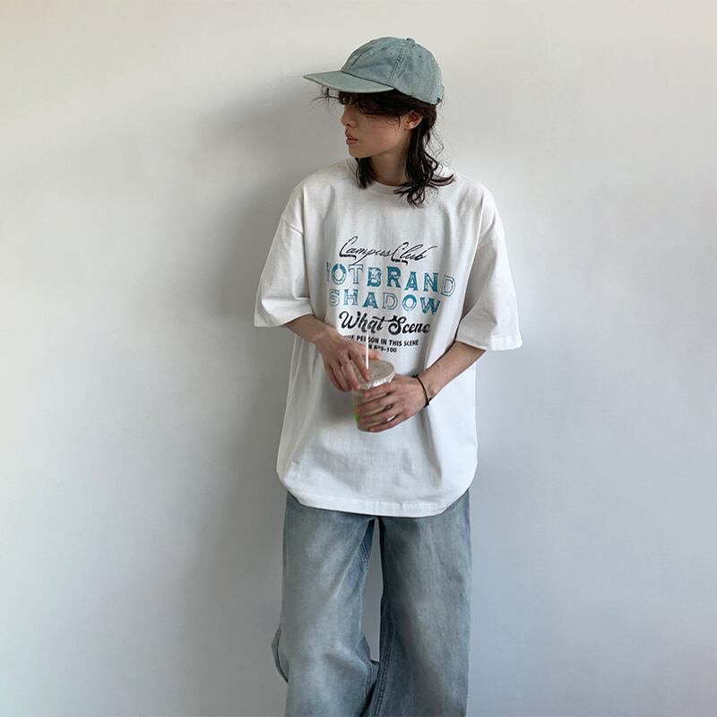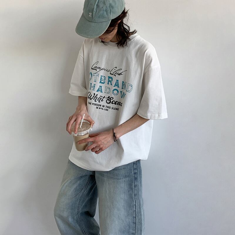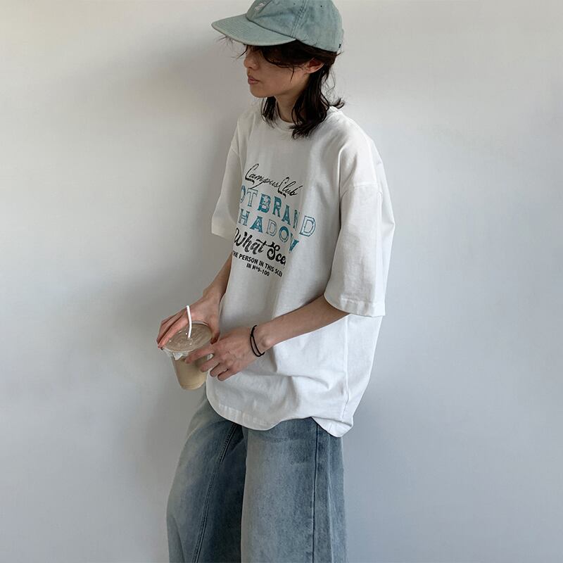 jiwuusアルファベットプリント半袖 Tシャツ