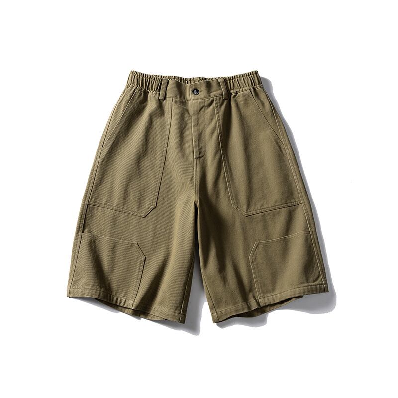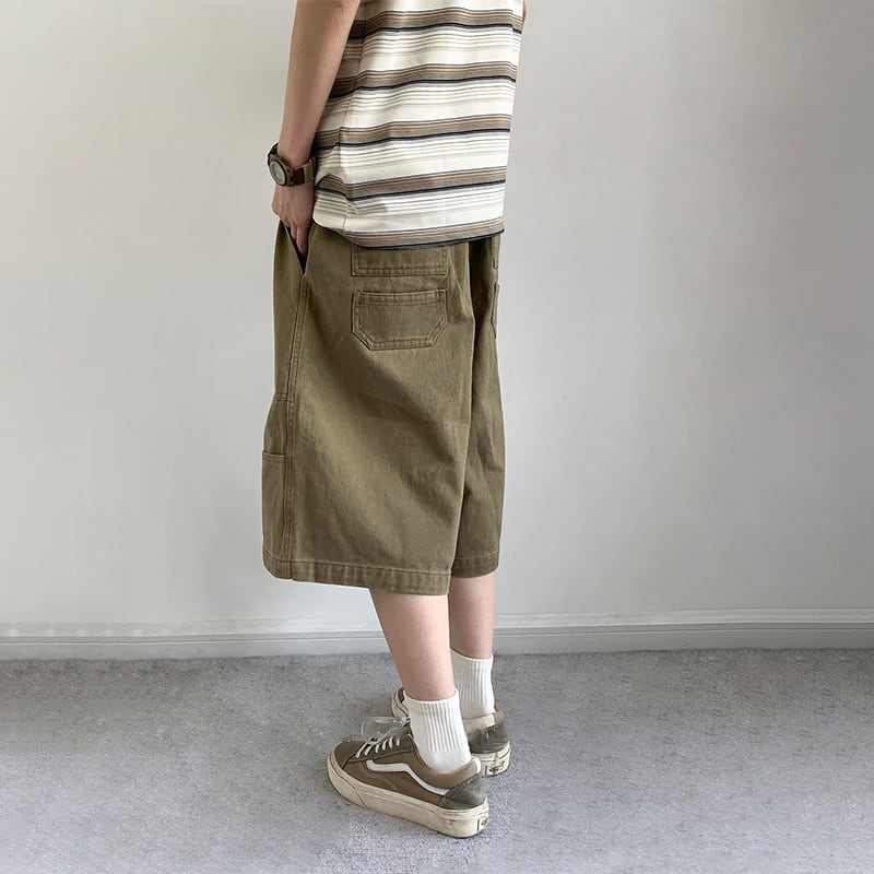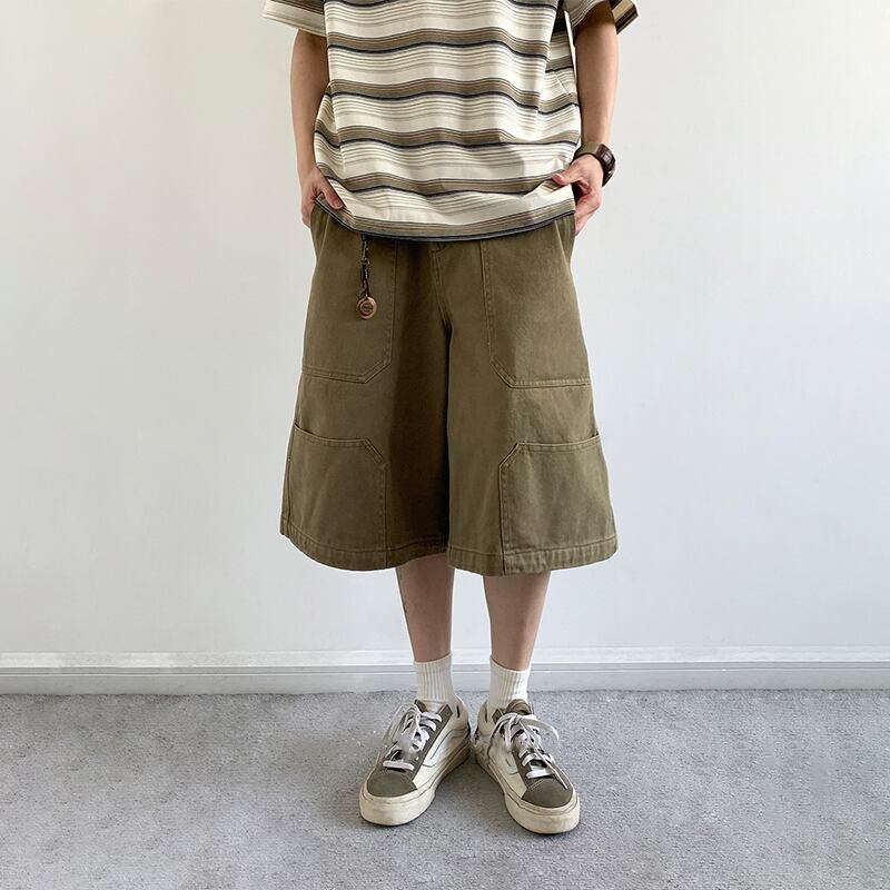 jiwuusウエストドロストダブルニーバギーハーフパンツ