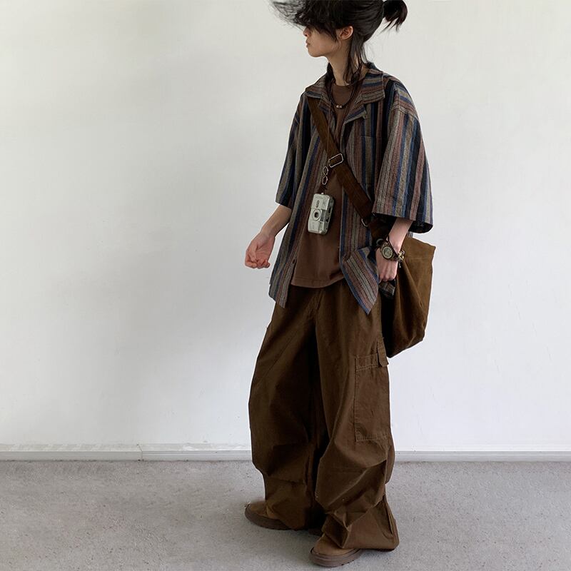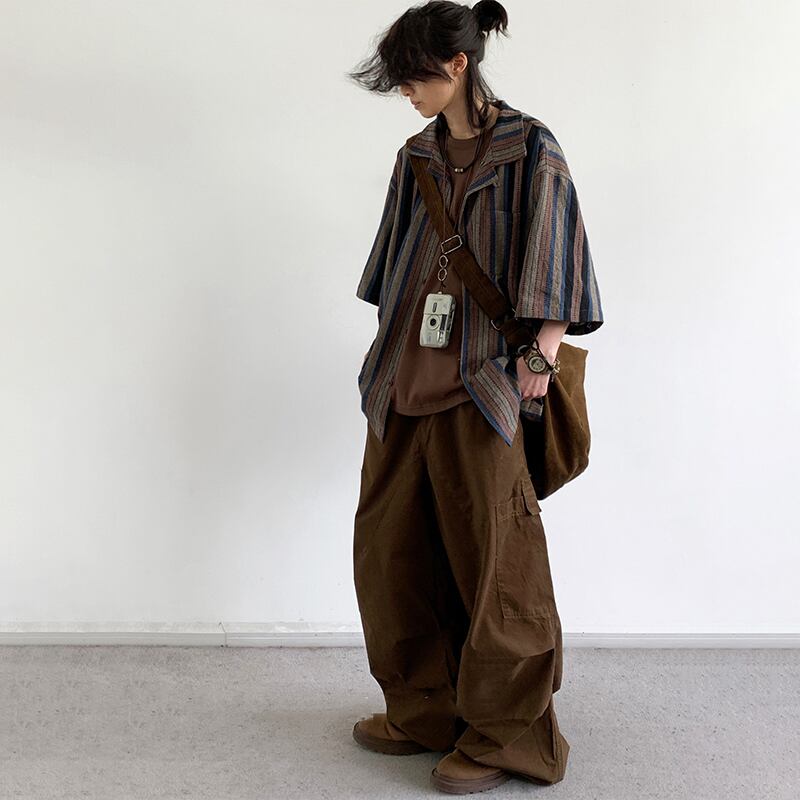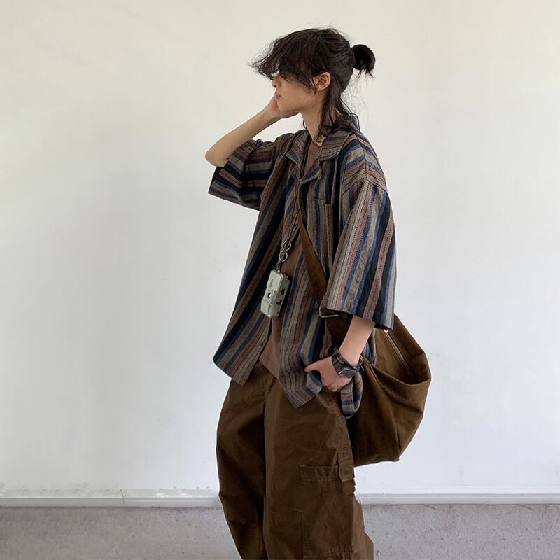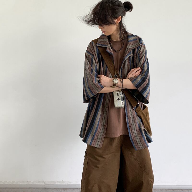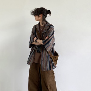 jiwuusヴィンテージカラーブロックストライプシャツ