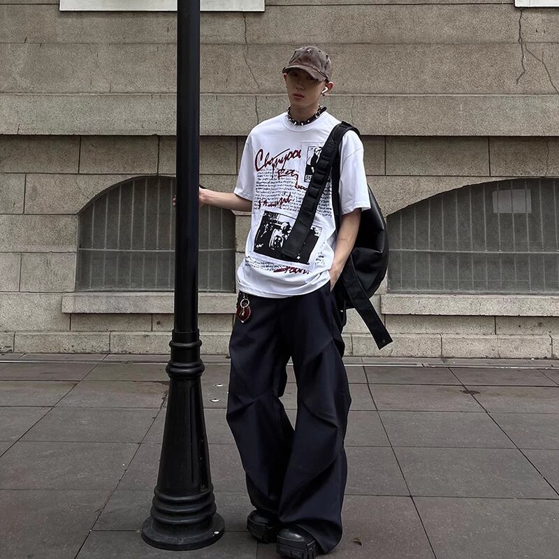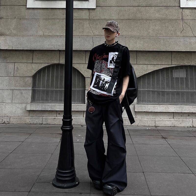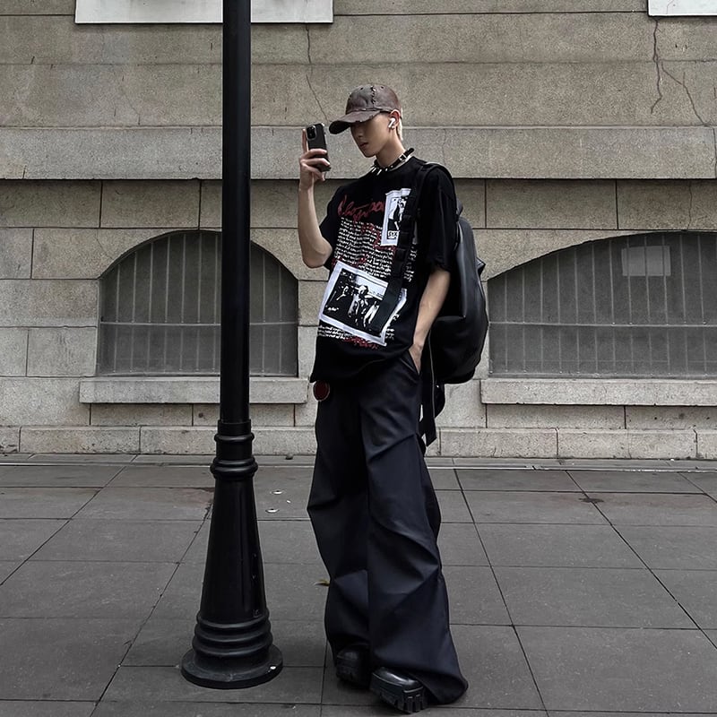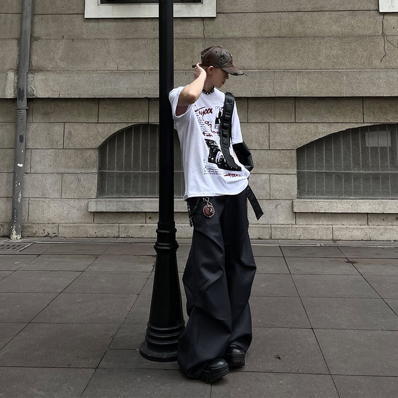 FLEE GFNバンドモノクロパッチプリント半袖Tシャツ