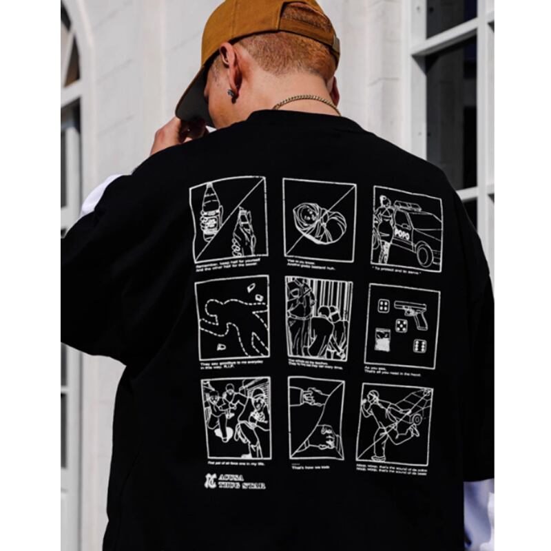 ACUSA3x3グリッドマンガデザイン半袖Tシャツ
