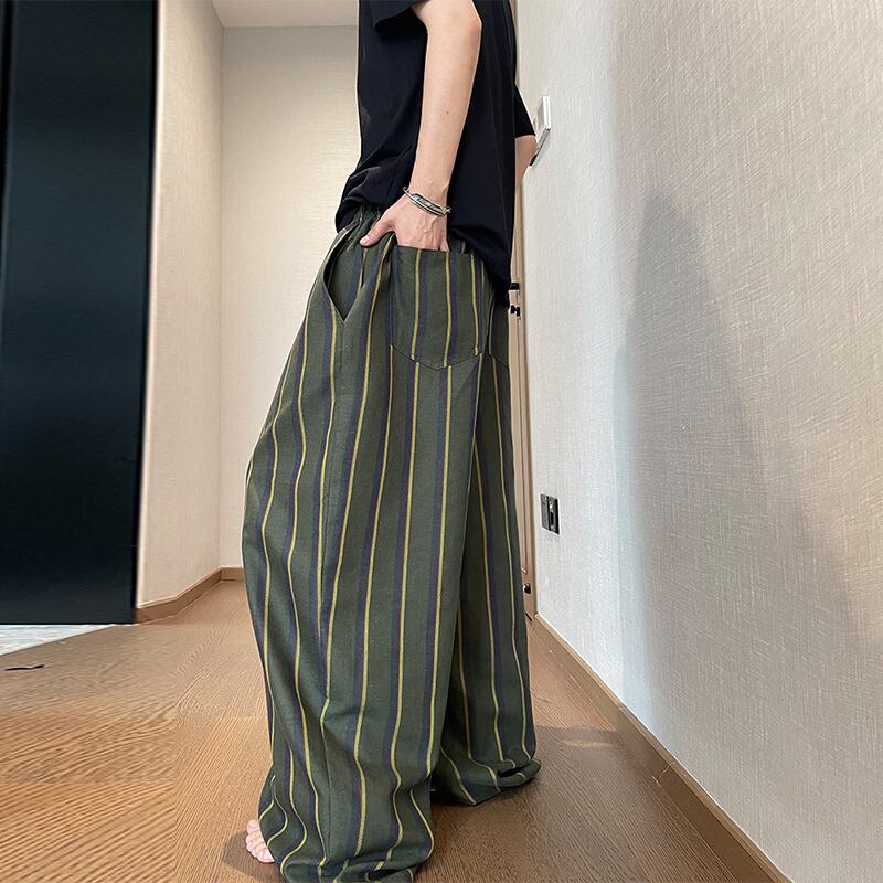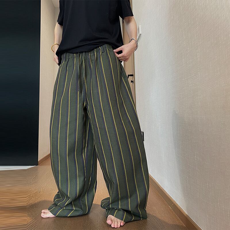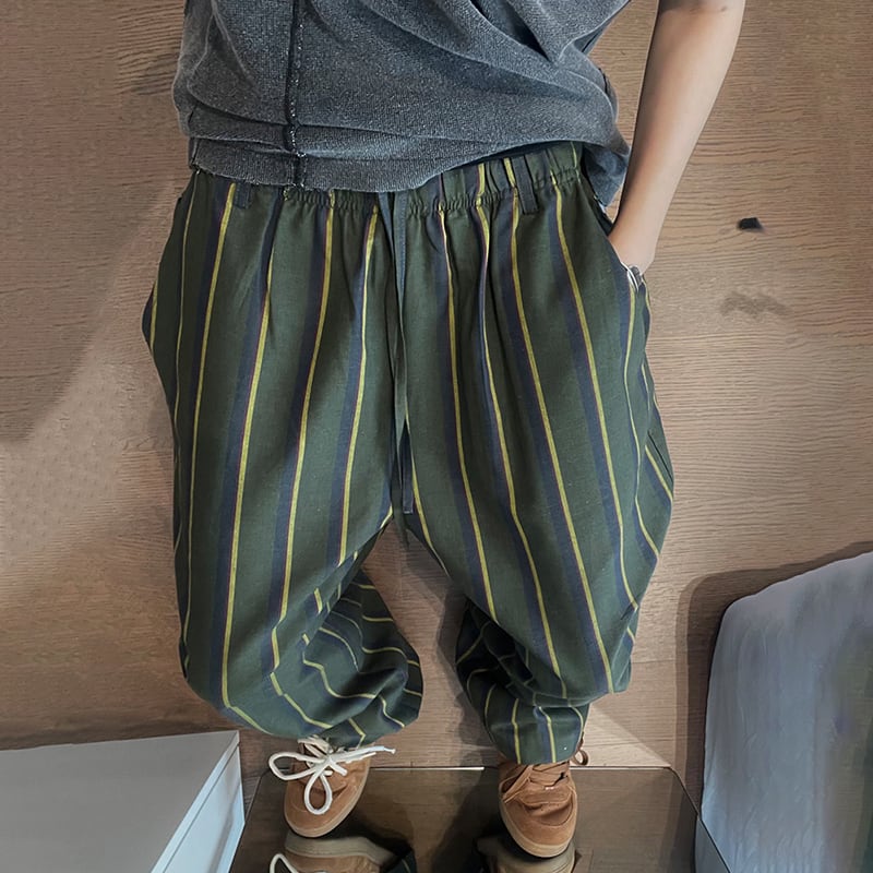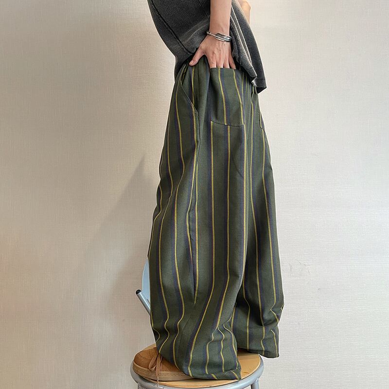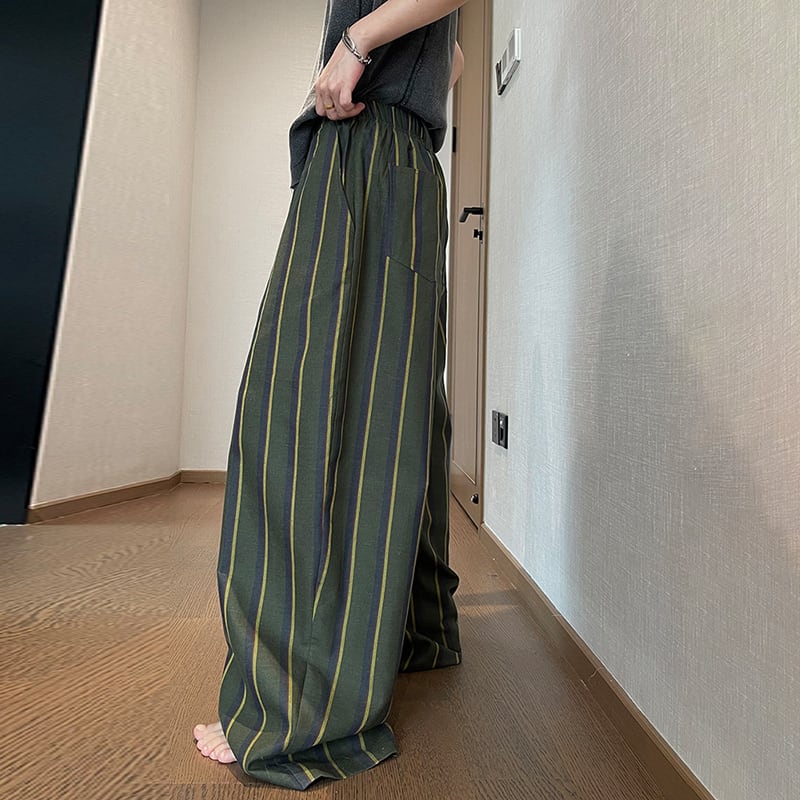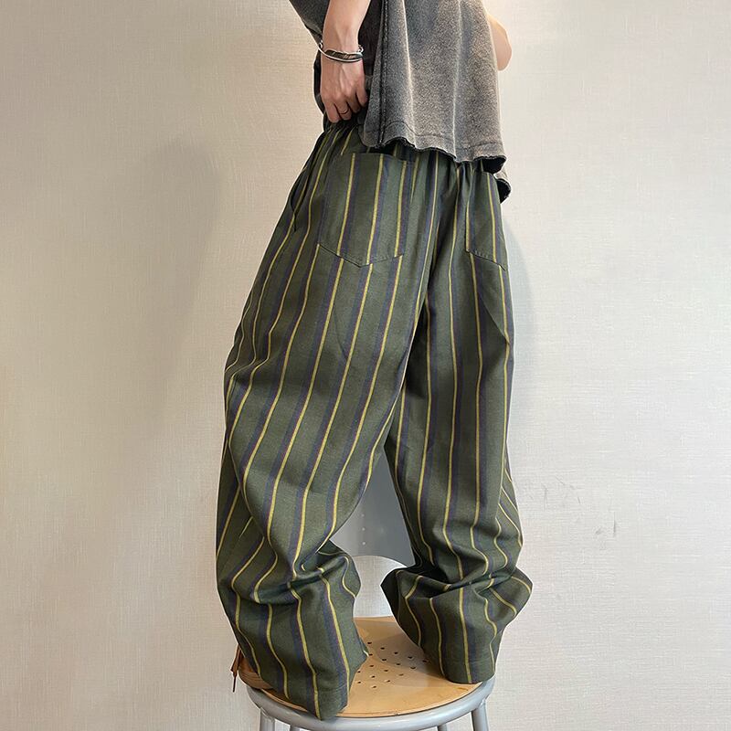 dannyandzee薄手ミリタリーグリーンストライプワイドパンツ