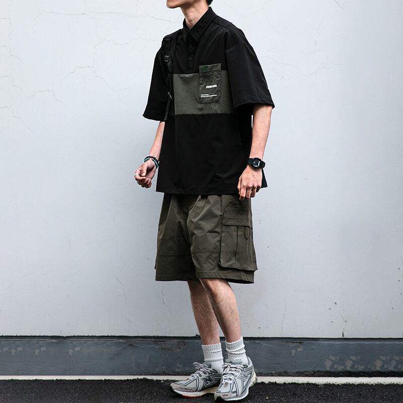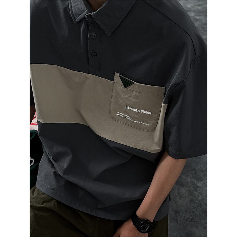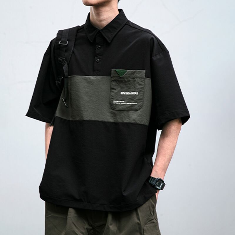 SKASEE STUDIOパッチワークポケット付きポロシャツ
