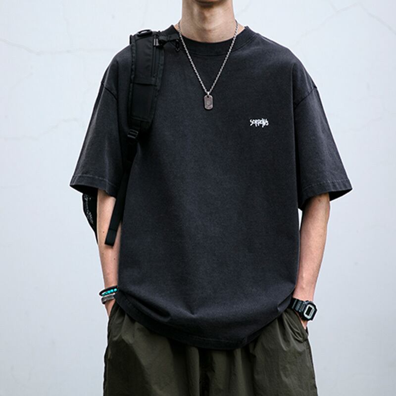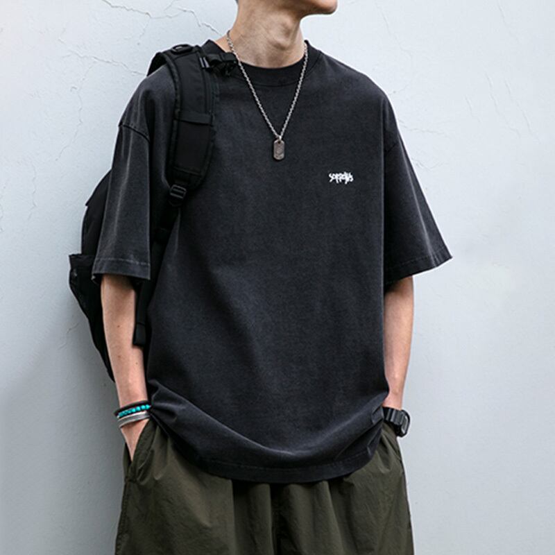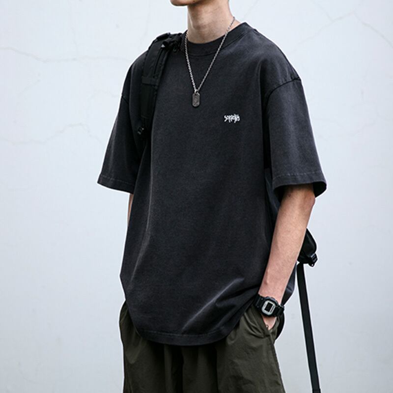 SKASEE STUDIO英字ロゴ刺繡半袖Tシャツ(320g)
