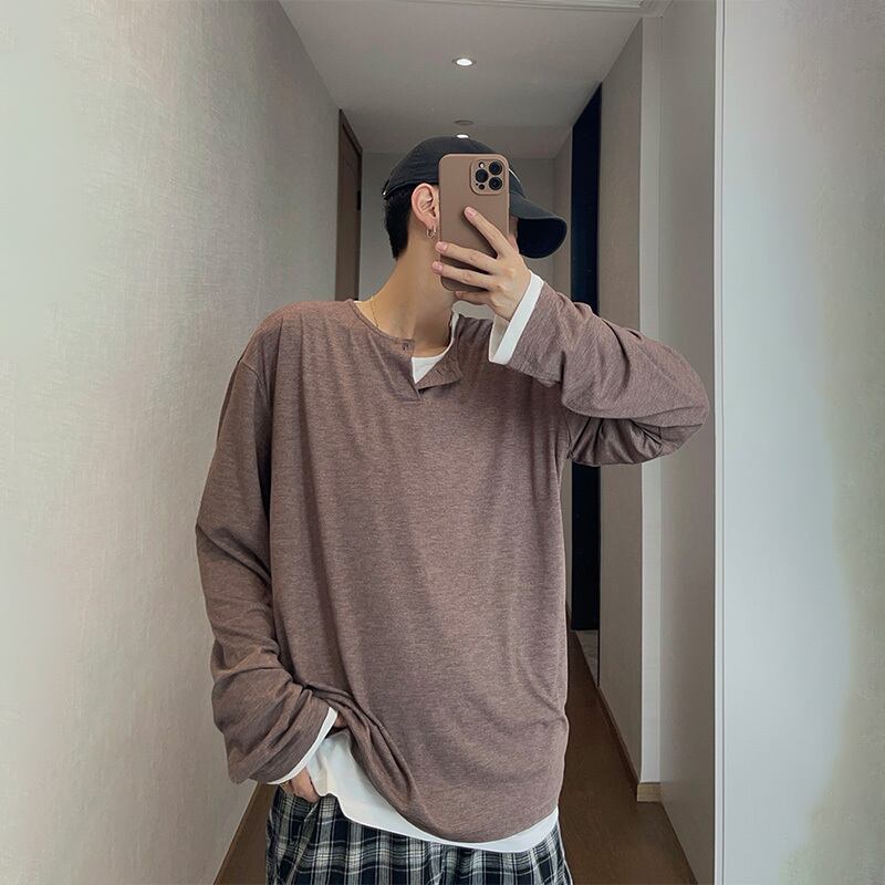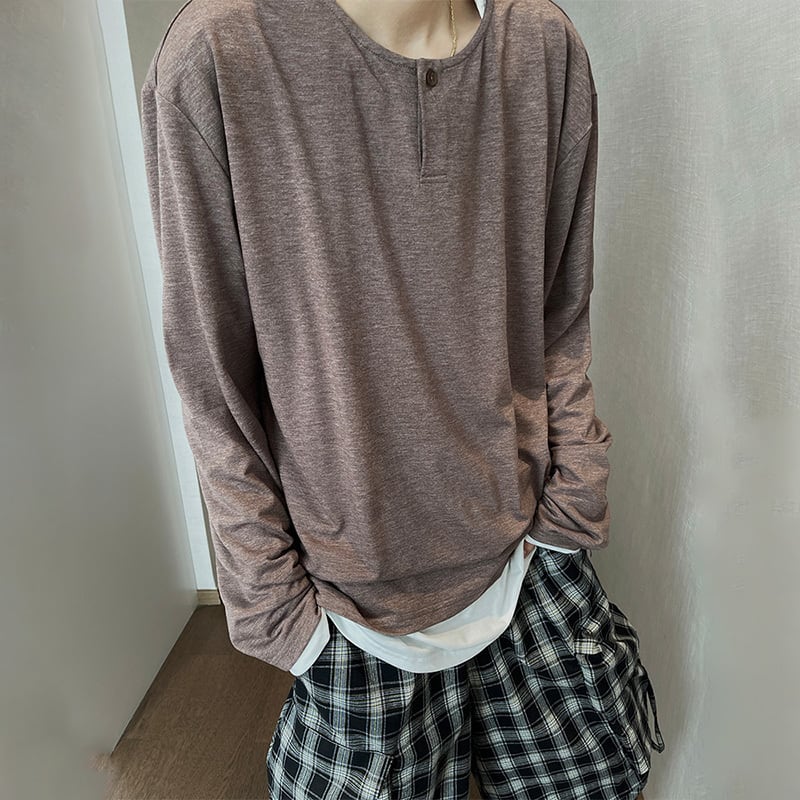dannyandzee1ボタンデザインレイヤード対応薄手Tシャツ