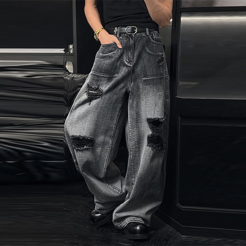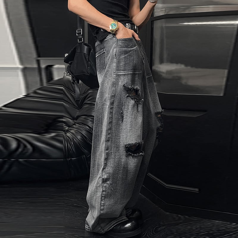 LDDリッパー加工ストリートデニムパンツ