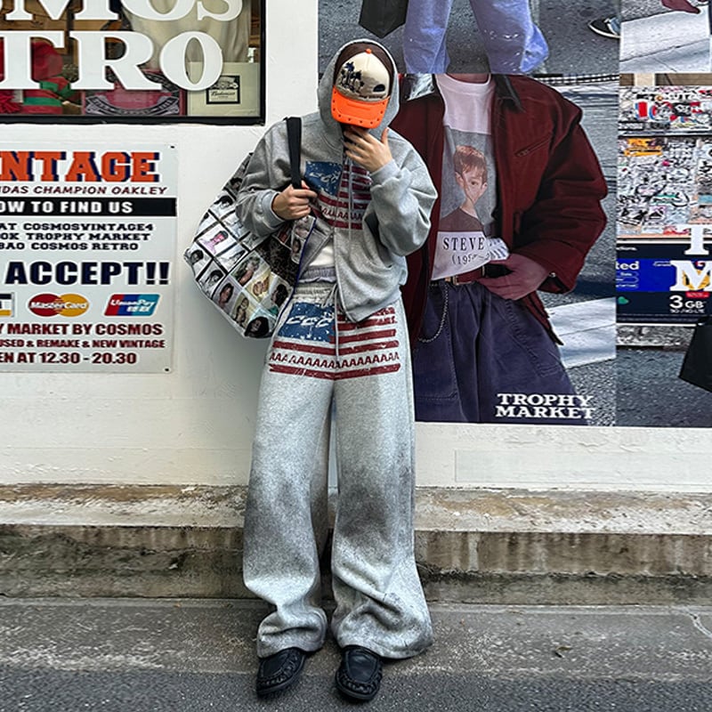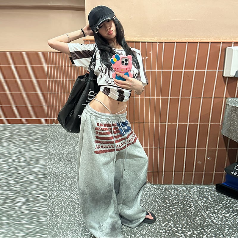 CGGAブランドロゴプリントドローストリングスウェットパンツ