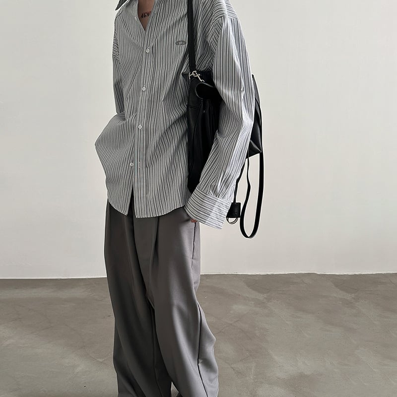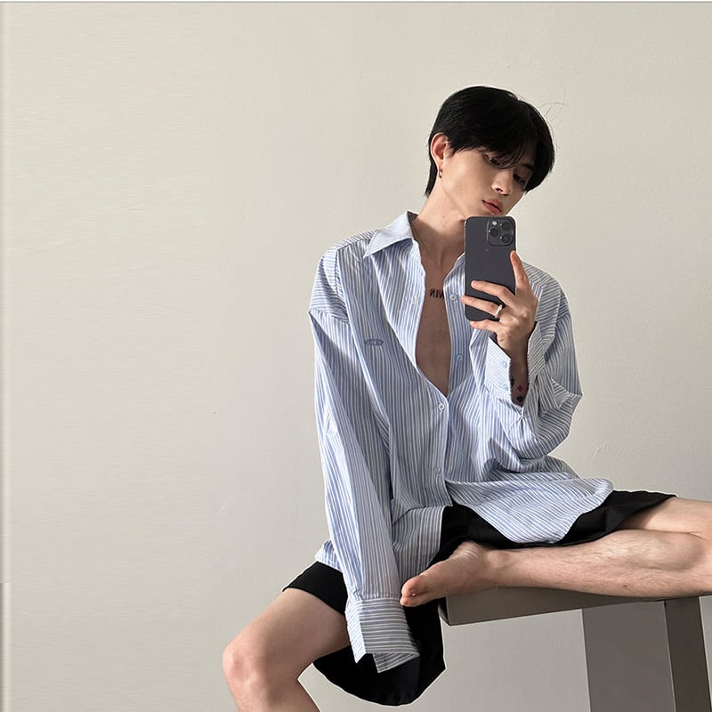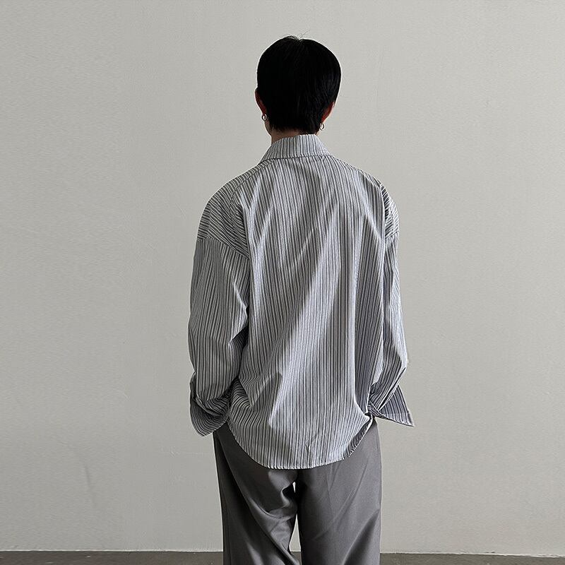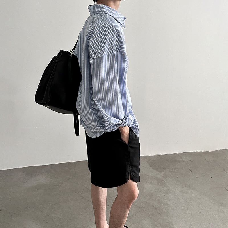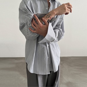 VERY FEWESTストライプ清涼感コットン長袖シャツ