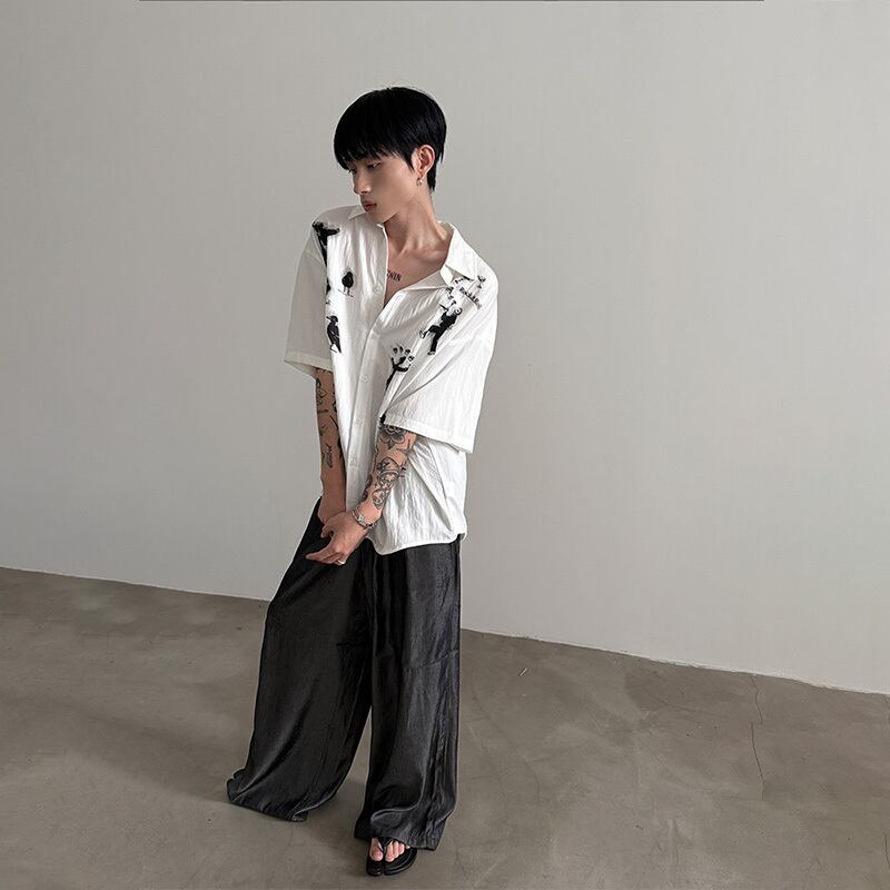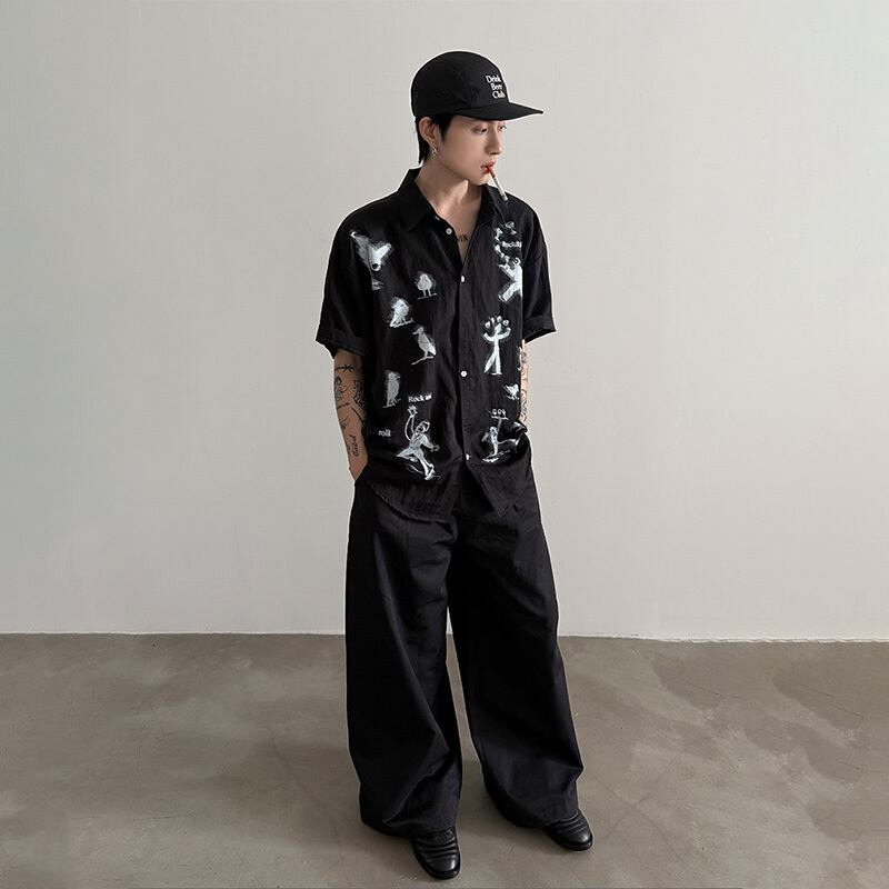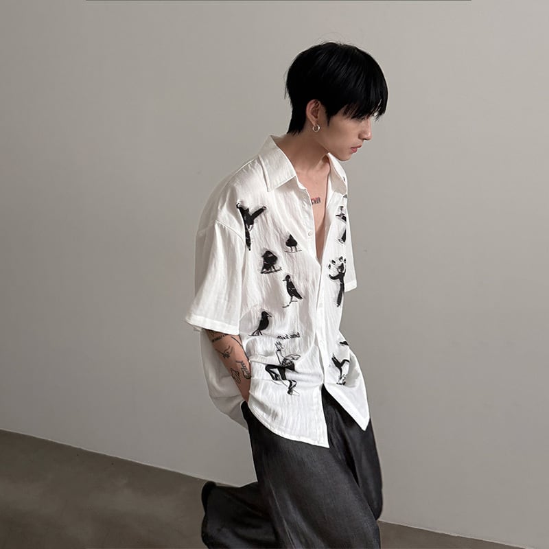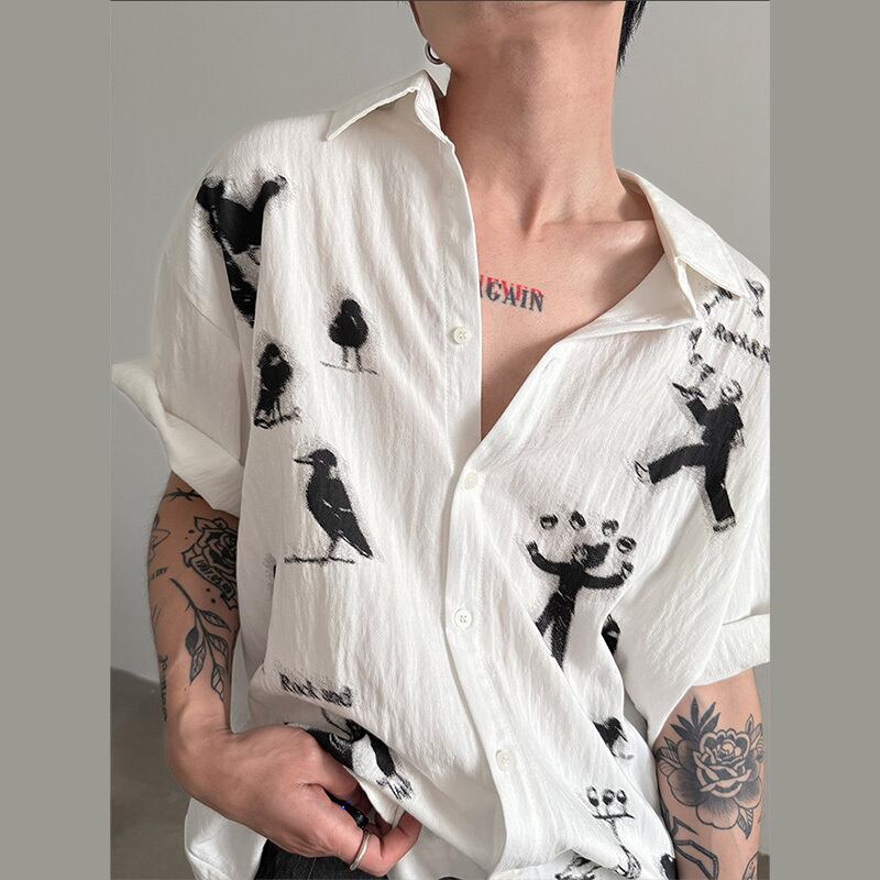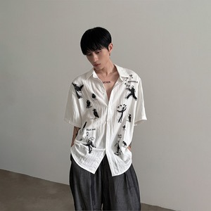 VERY FEWESTユーモアプリント涼感アイスシルクシャツ