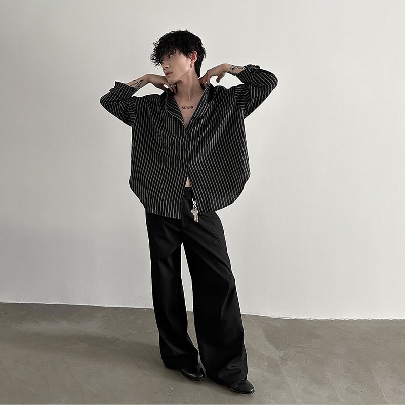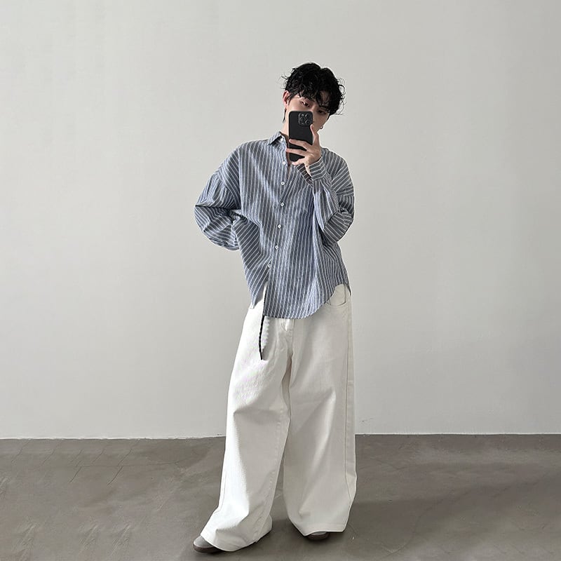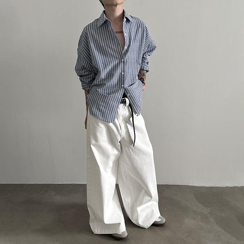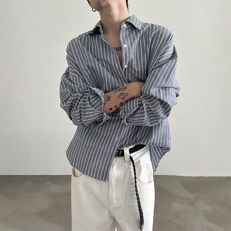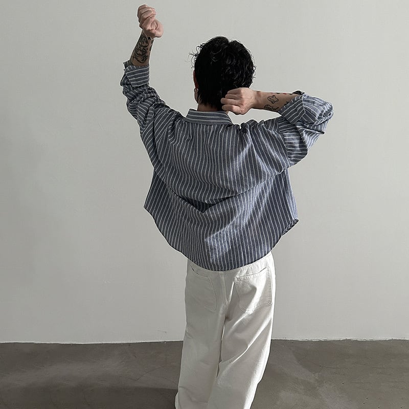 VERY FEWESTゆったりシルエット縦縞長袖シャツ