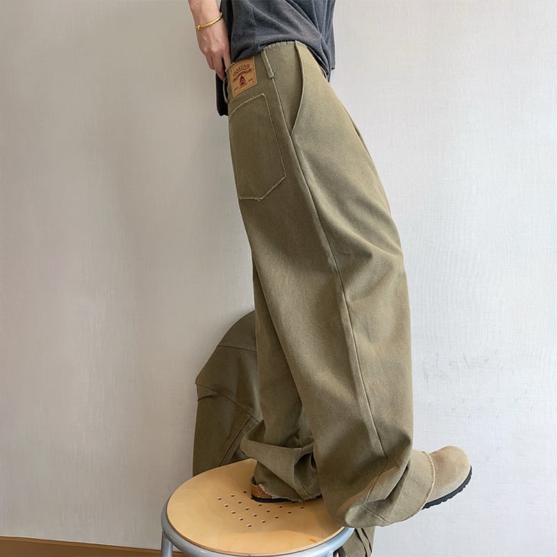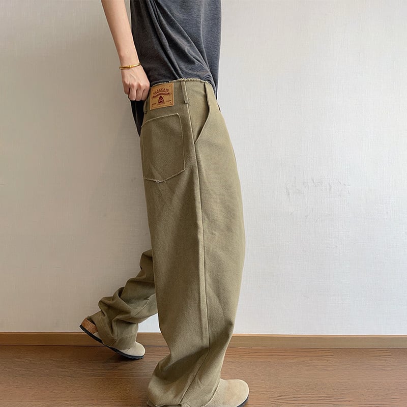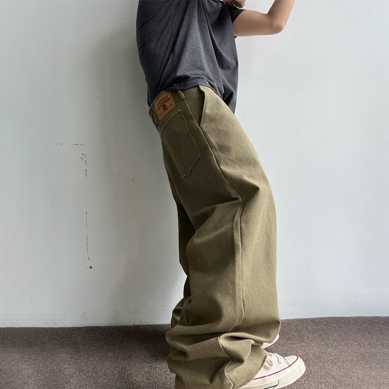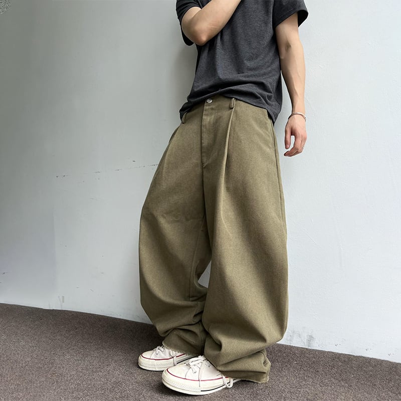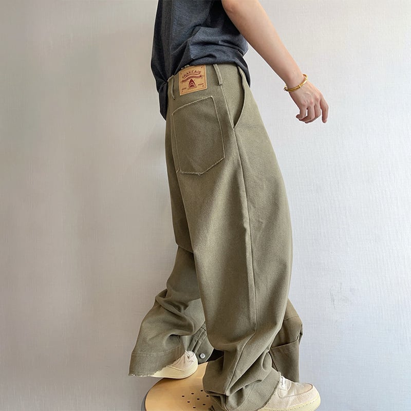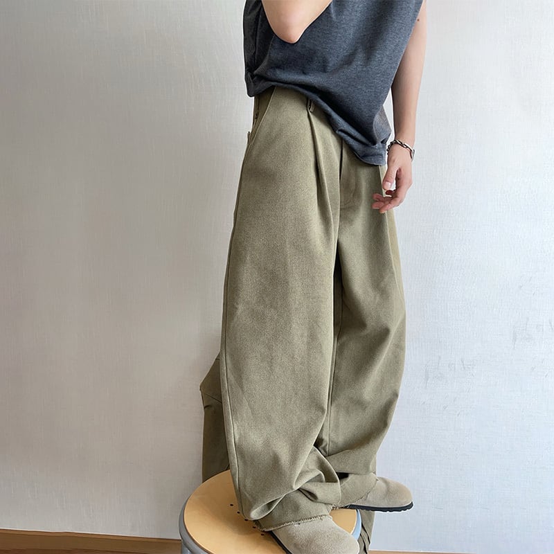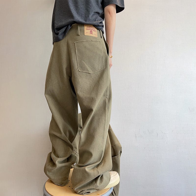 dannyandzeeフリンジ裾プリーツ入りストレートパンツ