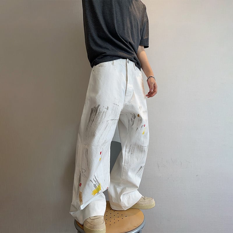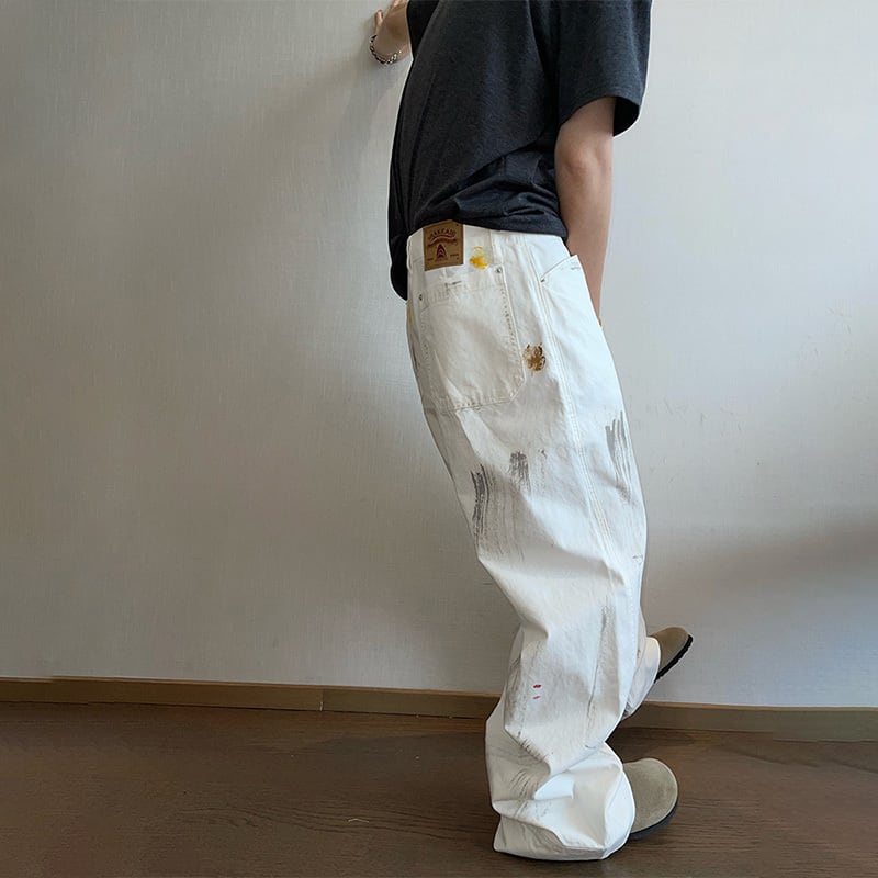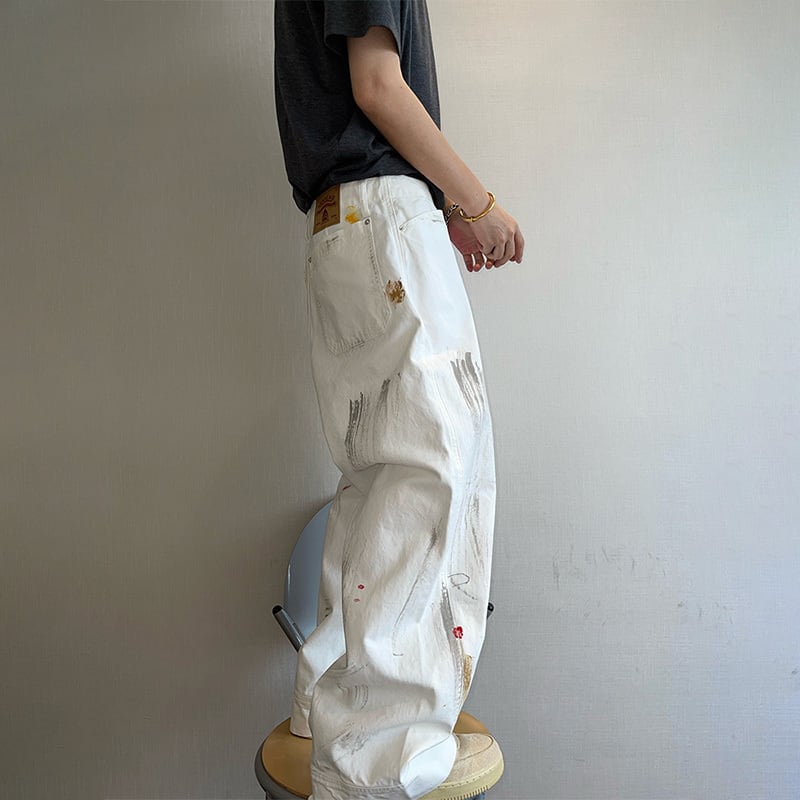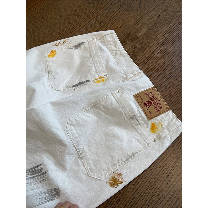 dannyandzeeアートワークデザインホワイトデニムパンツ