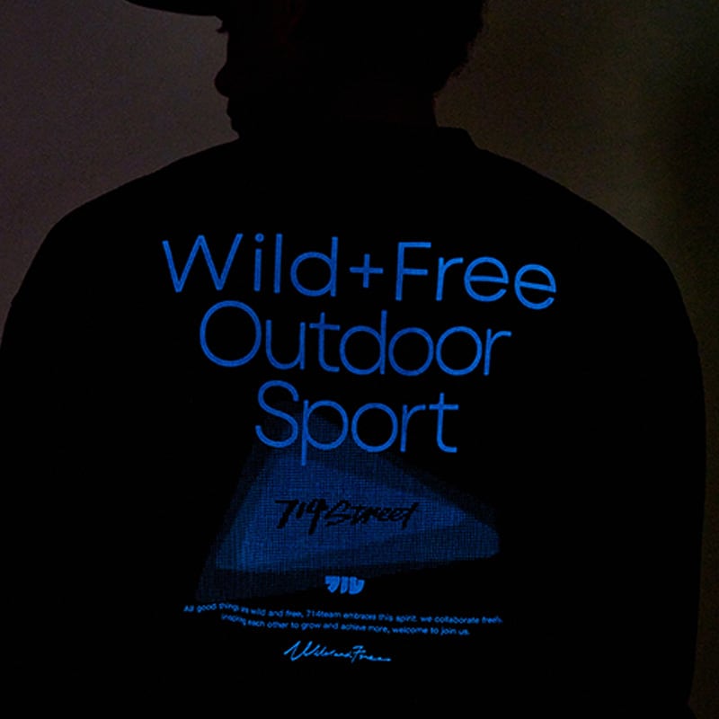 プリントはスポーティでレトロな雰囲気を漂わせるグラフィカルなデザイン。レトロなフォントと組み合わせ、全体に蓄光効果(夜光効果)を施しています。