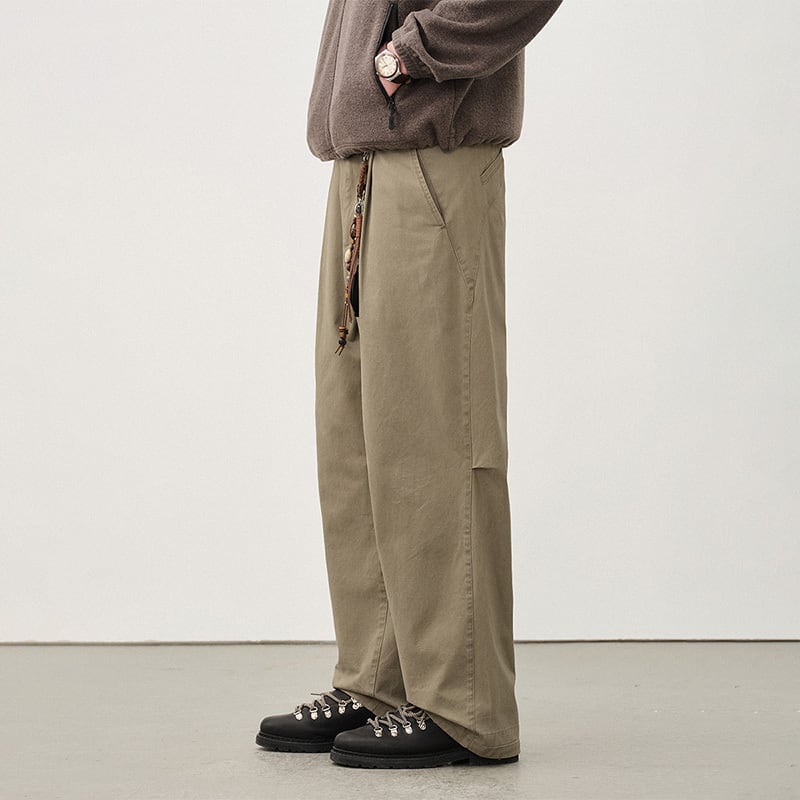 • シルエット: 素材の張りと重量感により、穿いた時のシルエットが美しく立ち、型崩れしにくい設計です。