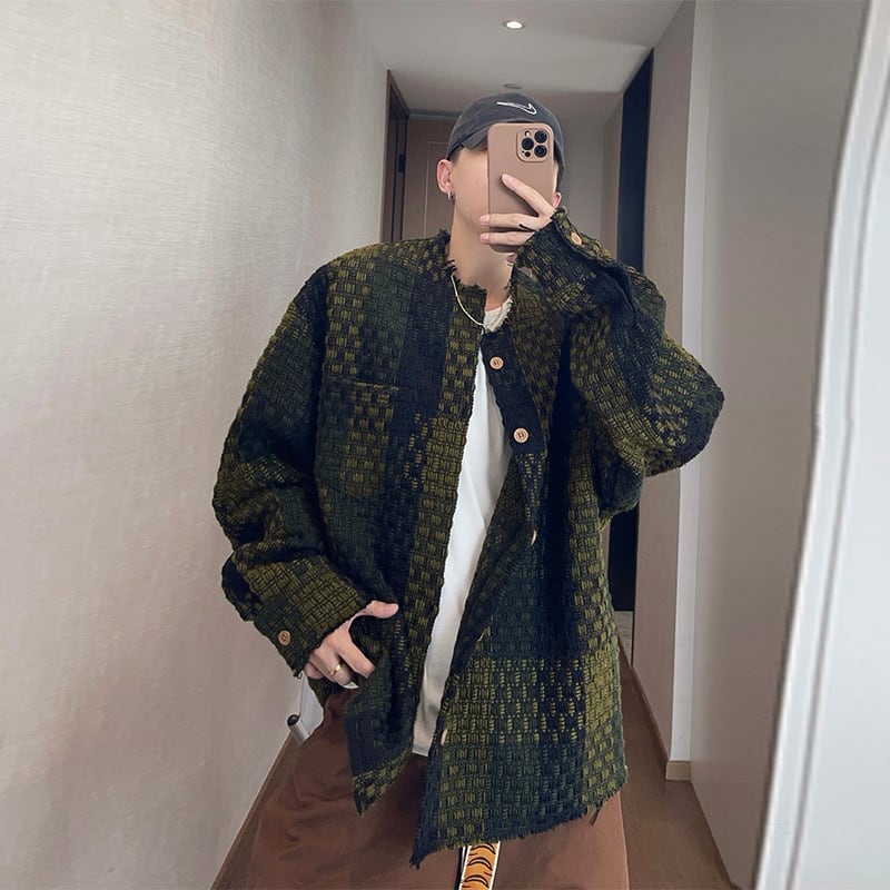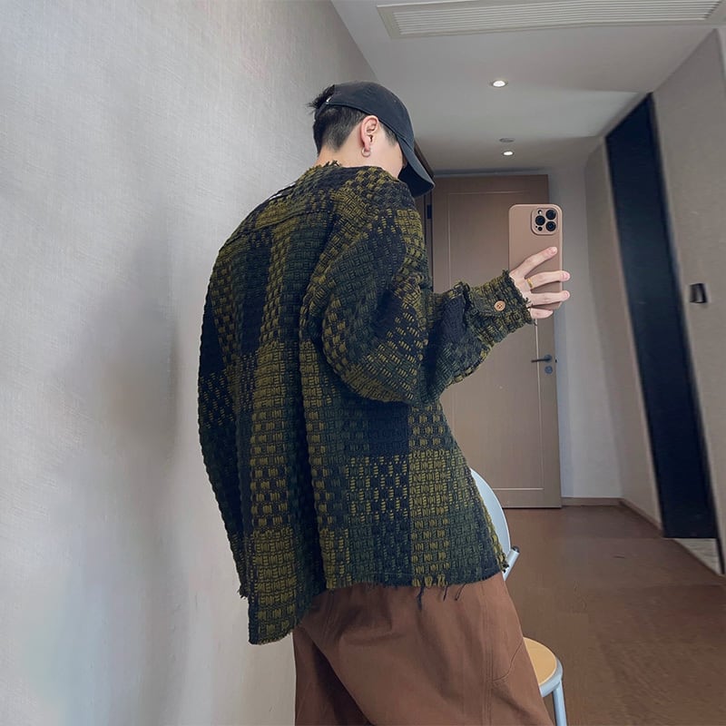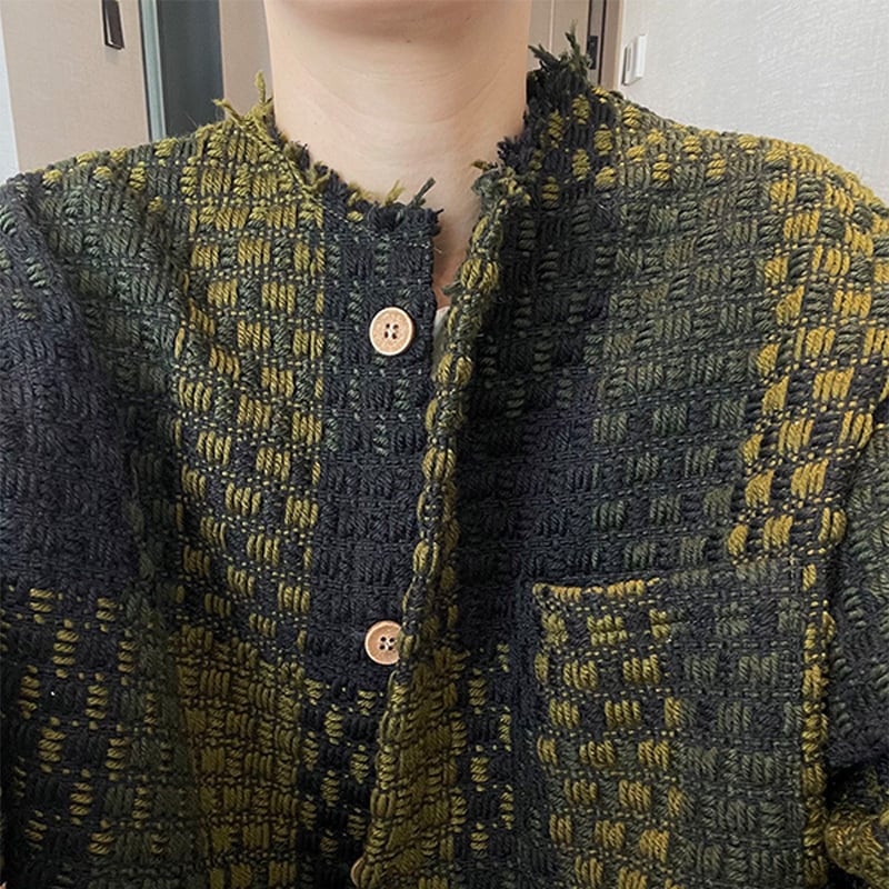 dannyandzeeチェックフリンジ付きルーズジャケット