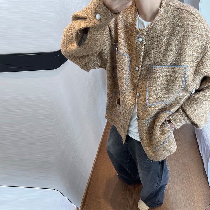 dannyandzeeオーバーサイズチェック風ニットジャケット