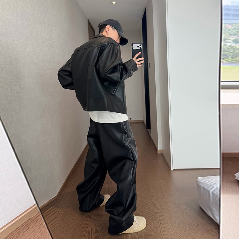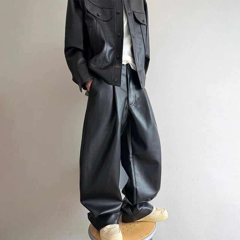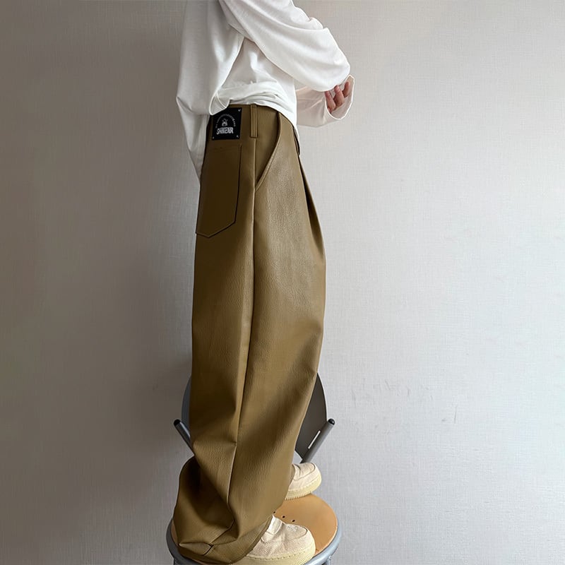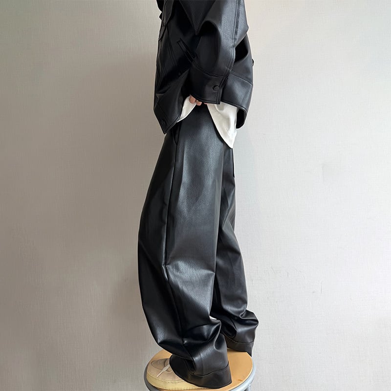dannyandzeeレザーテクスチャストレートパンツ