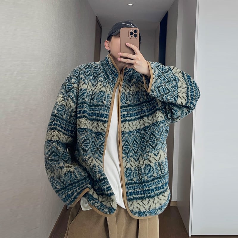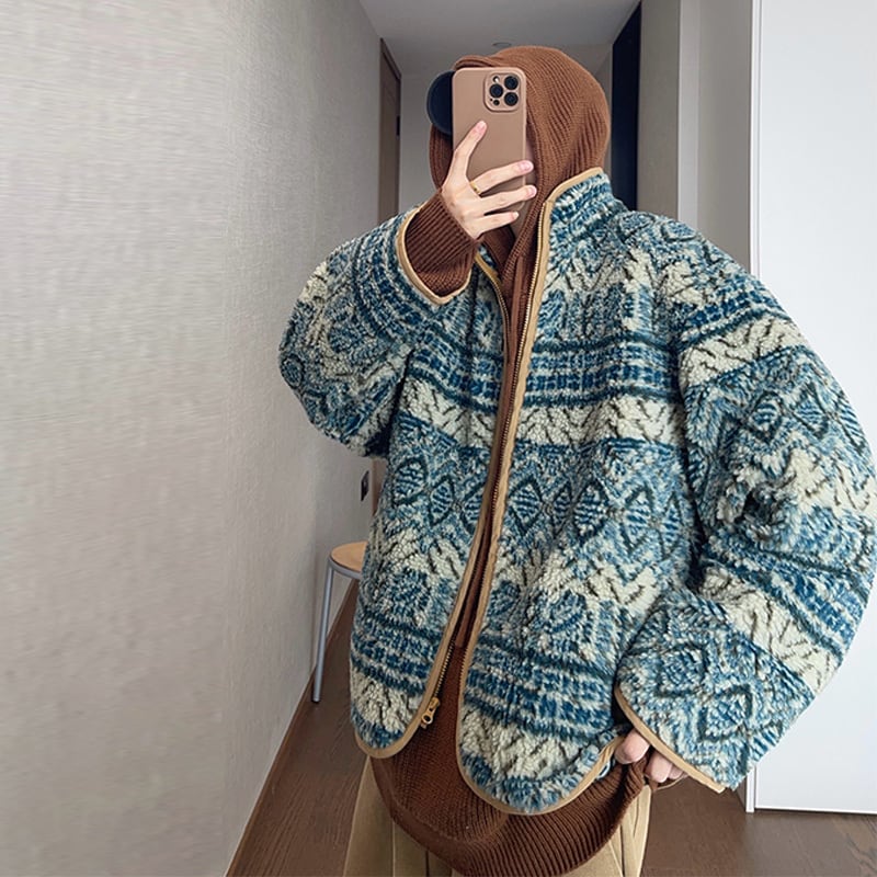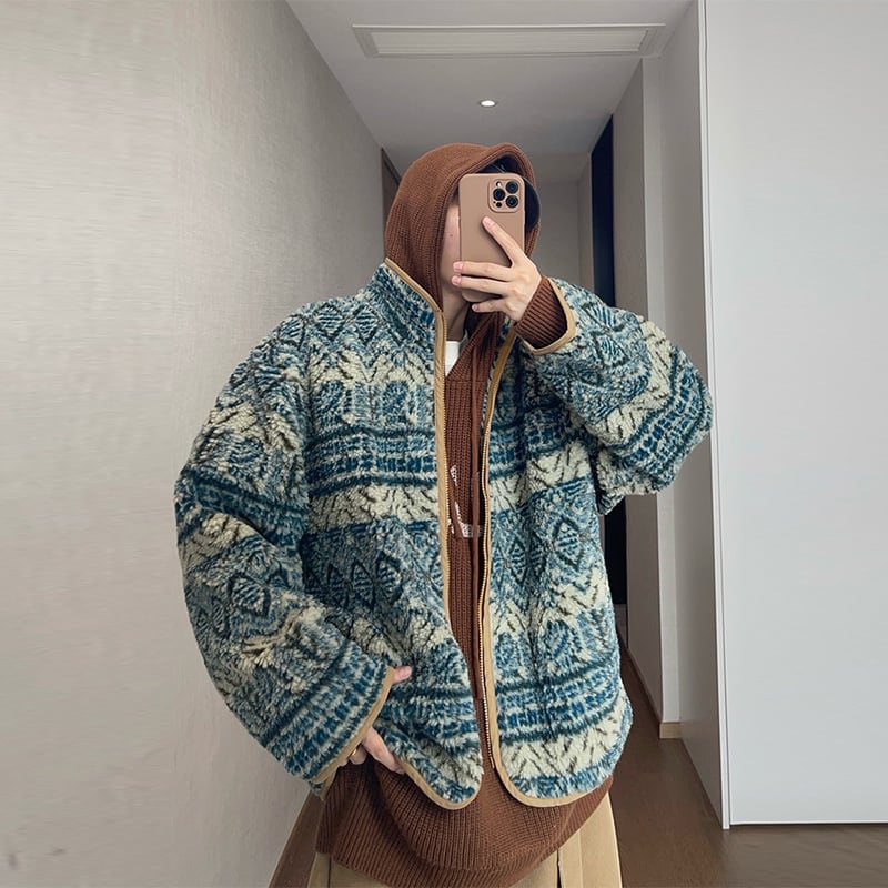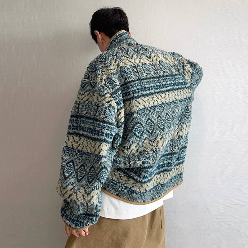 dannyandzeeビンテージ風ジャガードフリースジャケット