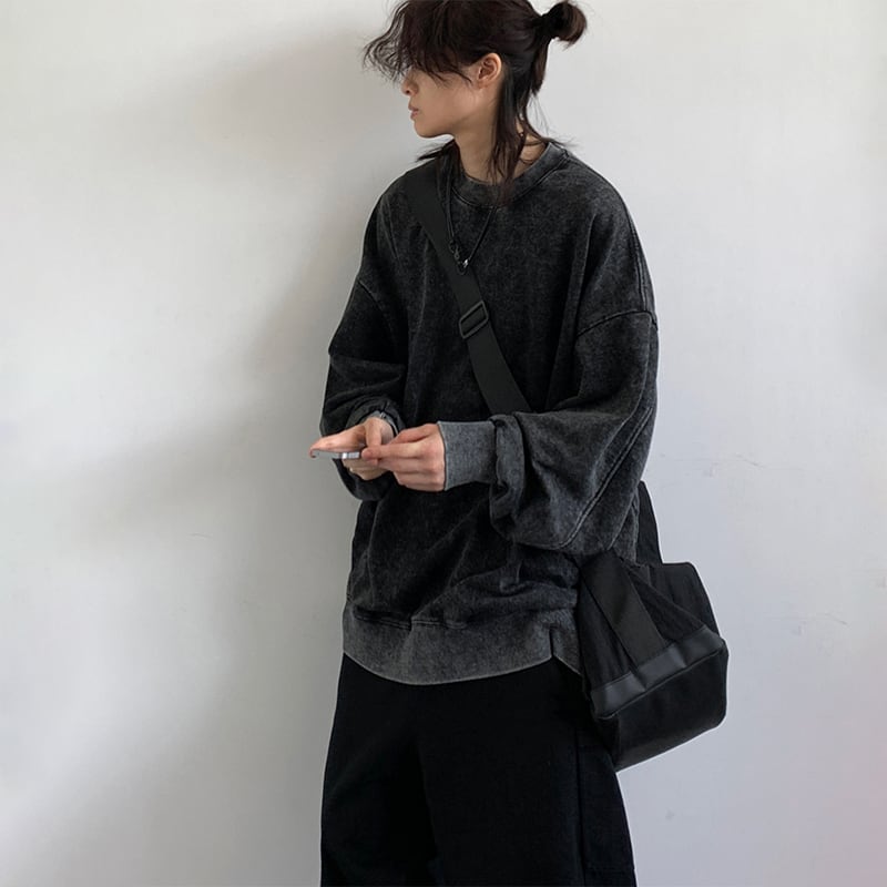jiwuusレトロウォッシュ加工トレーナー