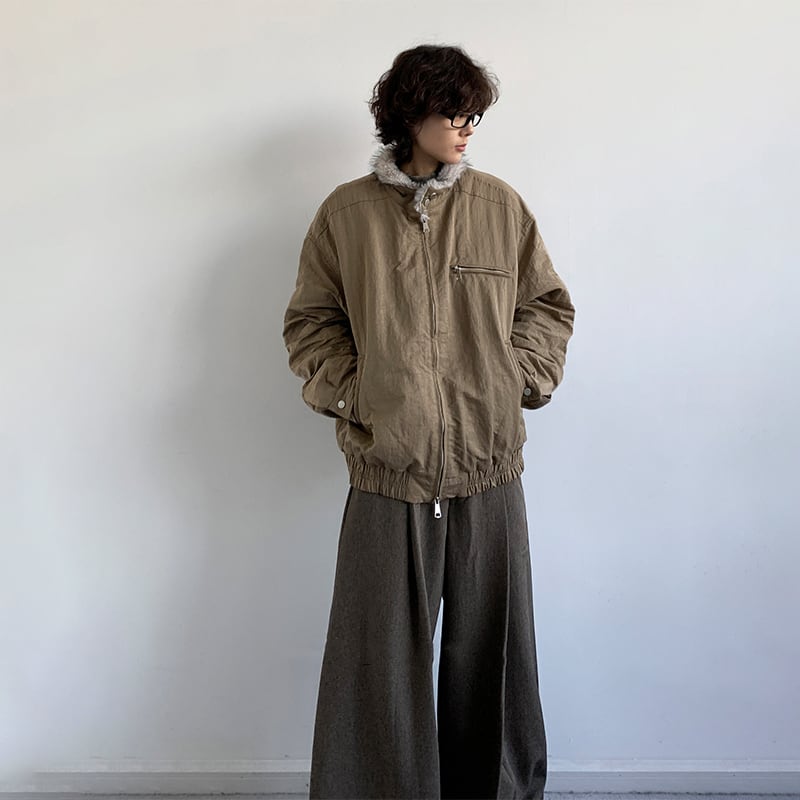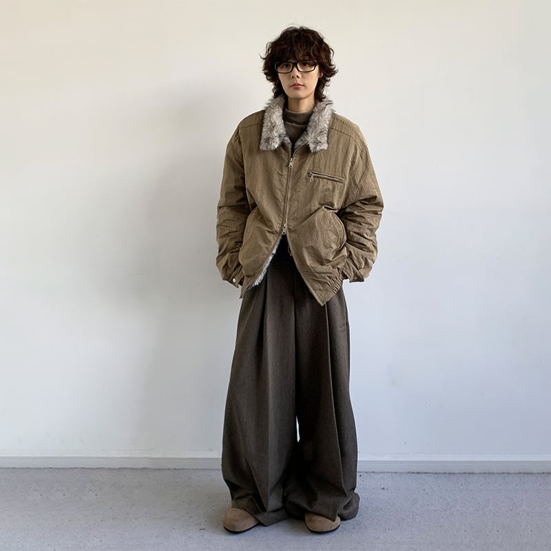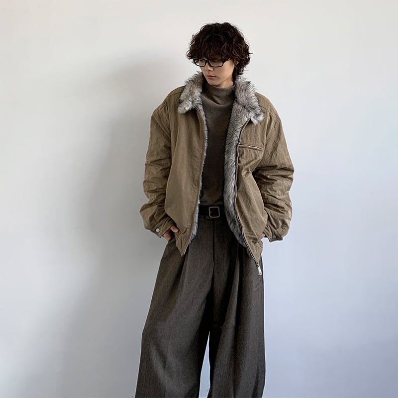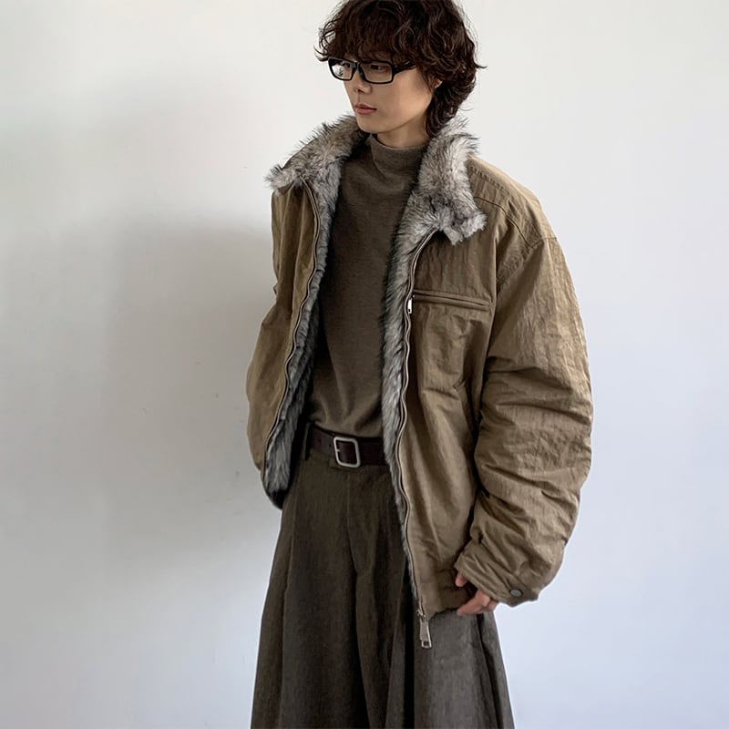 jiwuusユニセックスファー襟ジャケット