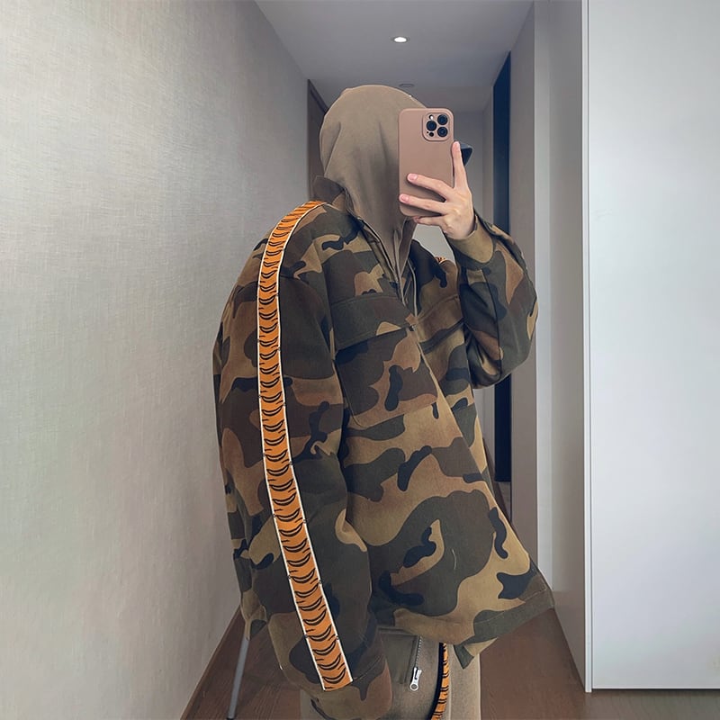dannyandzeeタイガーテープパイピングカモフラージュ中綿ジャケット