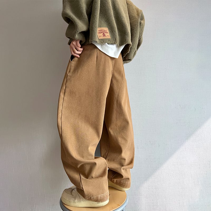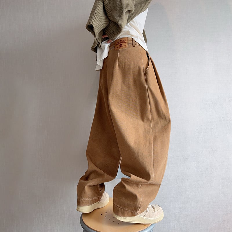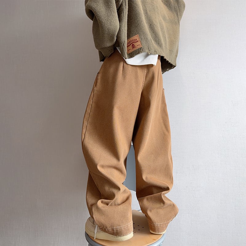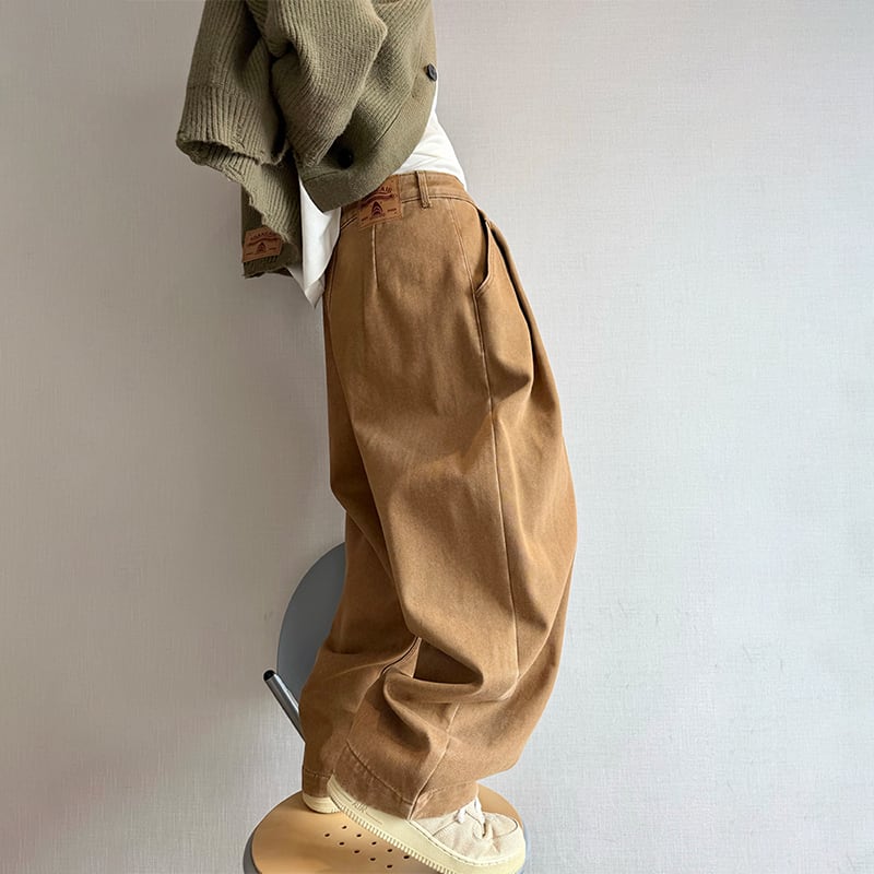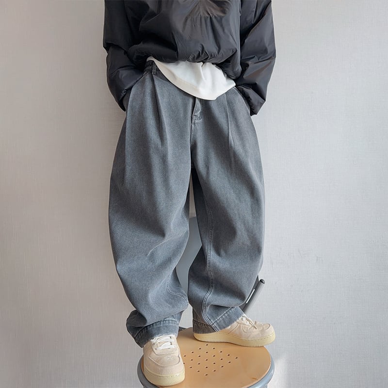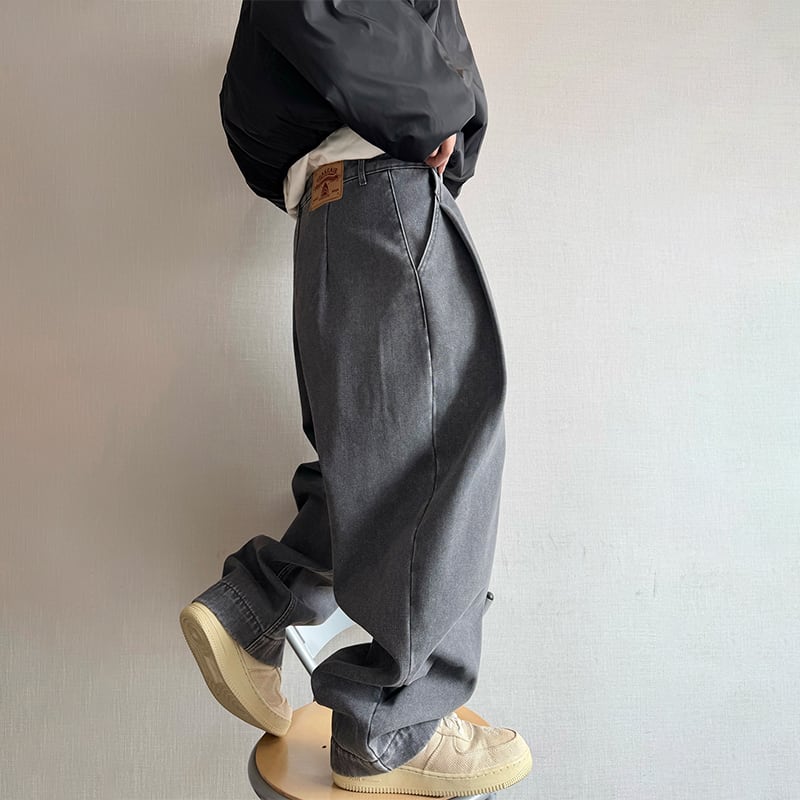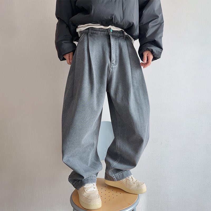 dannyandzee裏起毛厚手ワイドデニムカーブパンツ