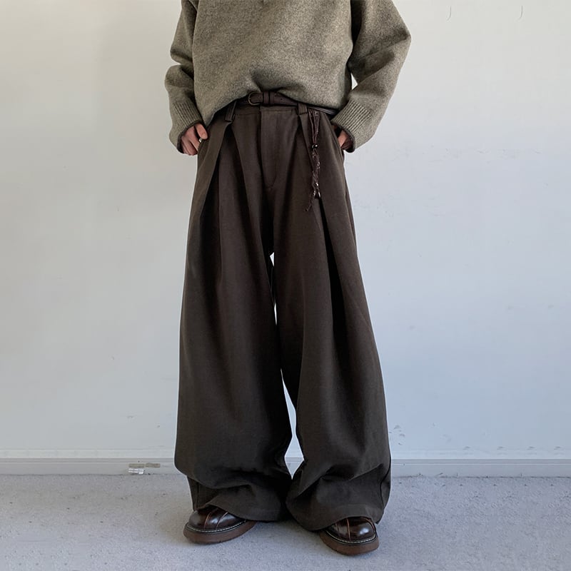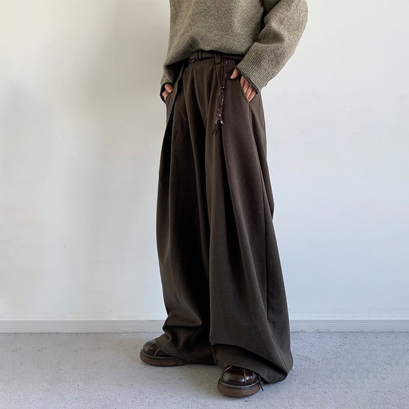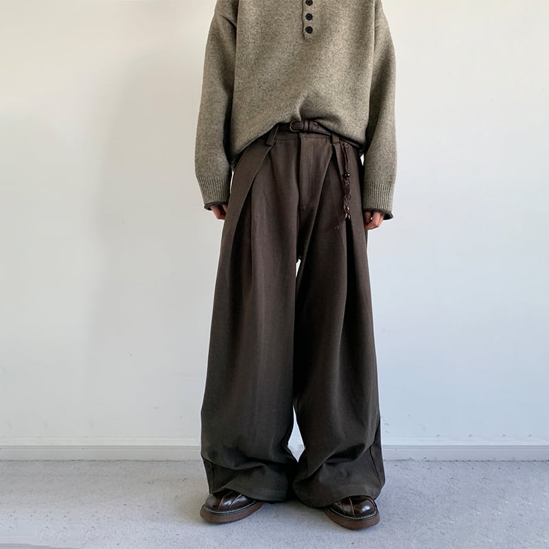 jiwuusゆったりシルエットラシャプリーツパンツ