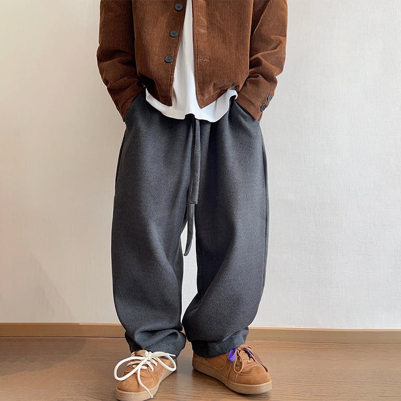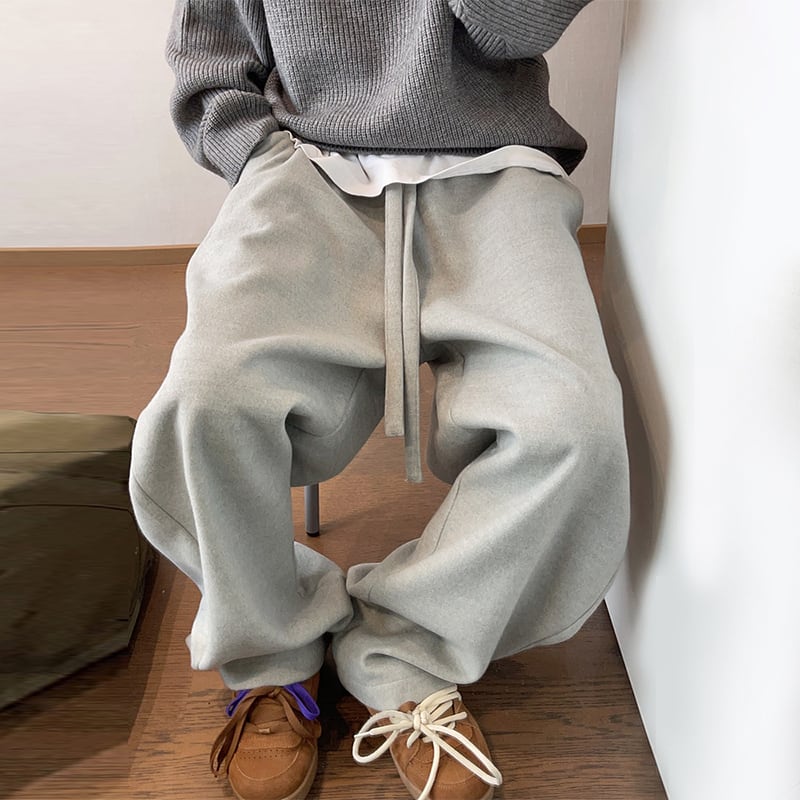 dannyandzeeゴムウエスト厚手ワイドパンツ