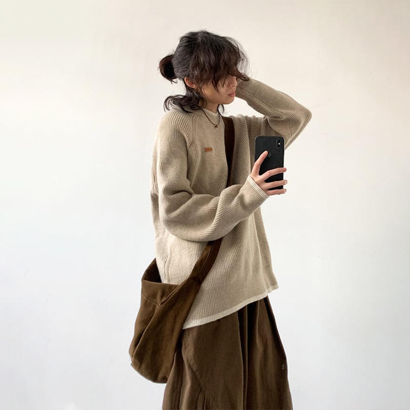 jiwuusオーバーサイズリブニットセーター