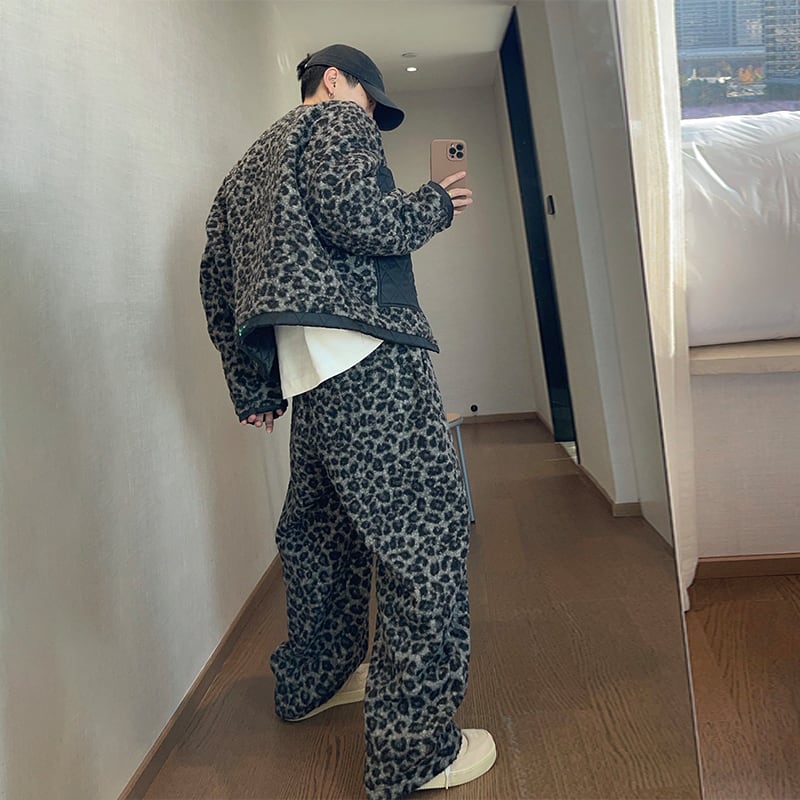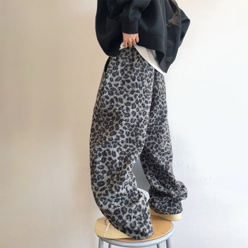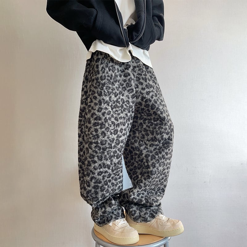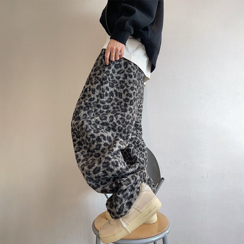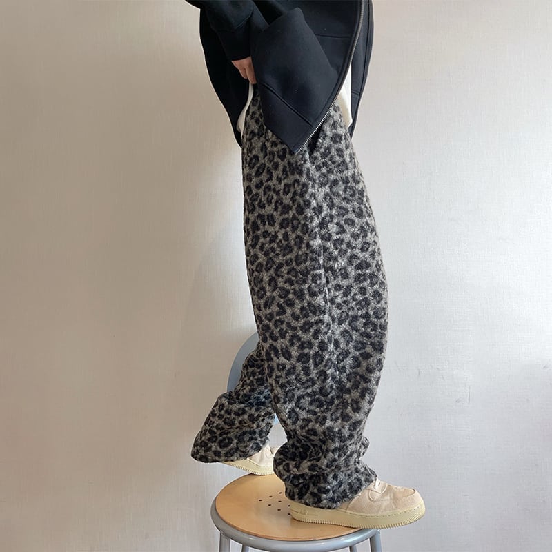 dannyandzeeレオパード柄厚手ワイドパンツ
