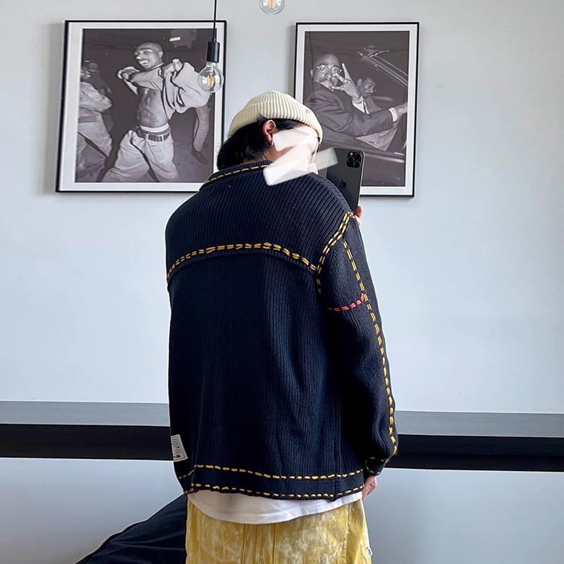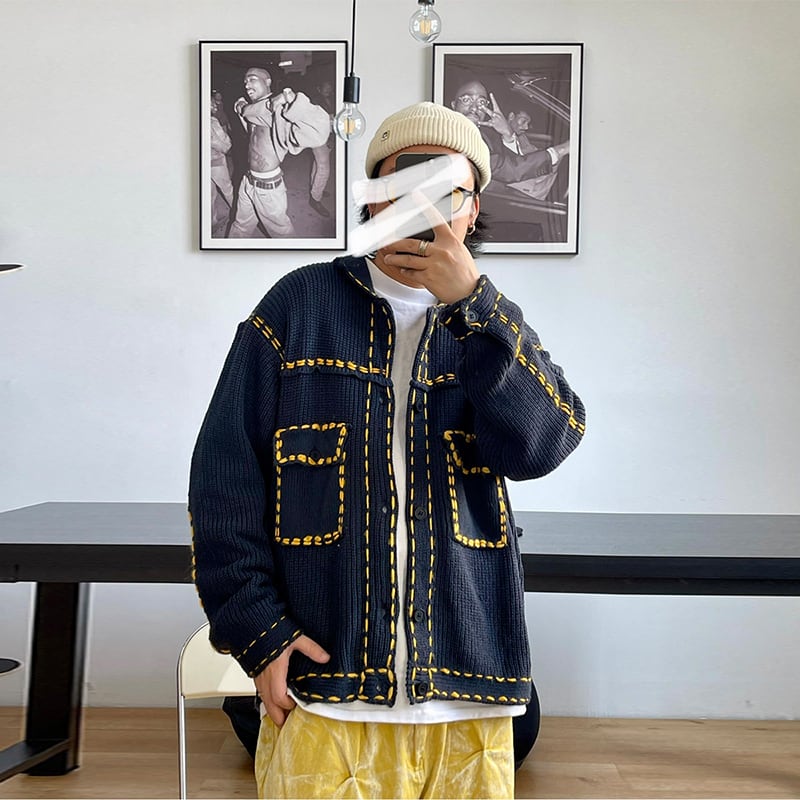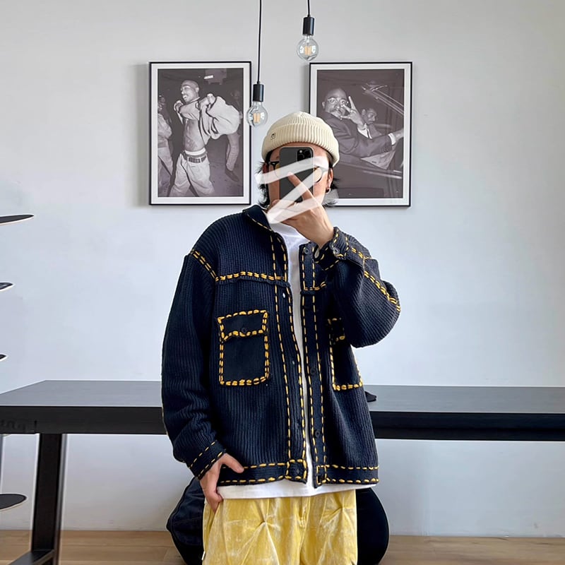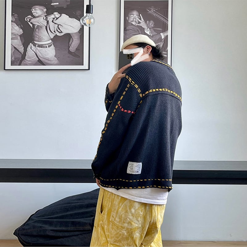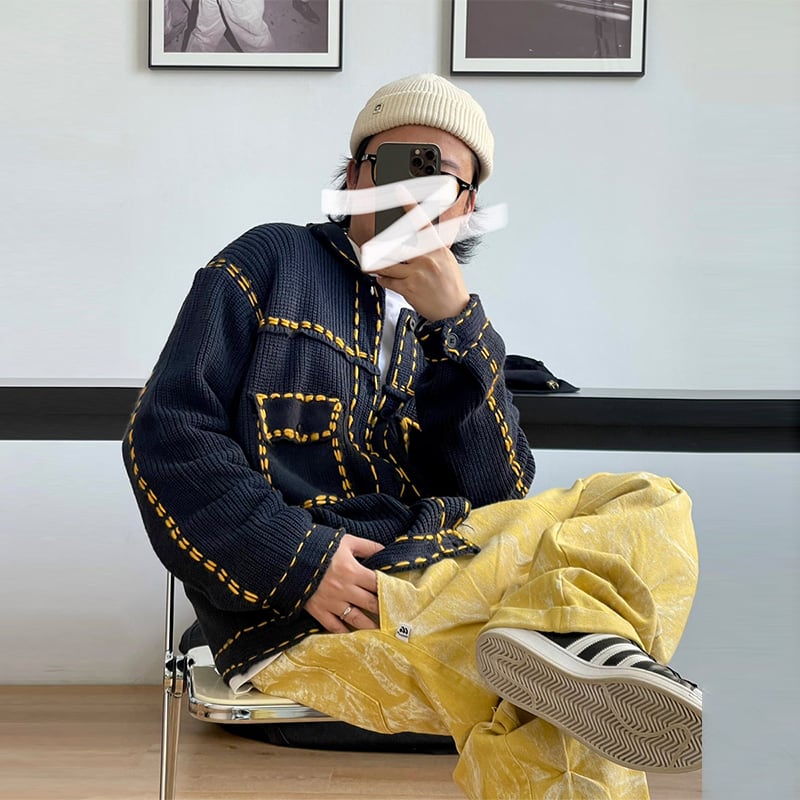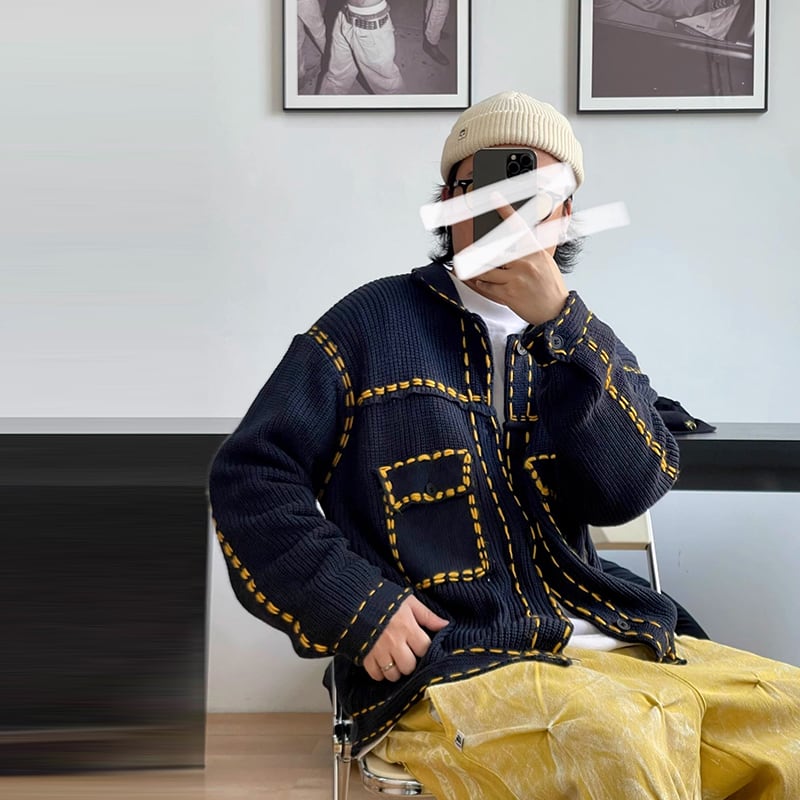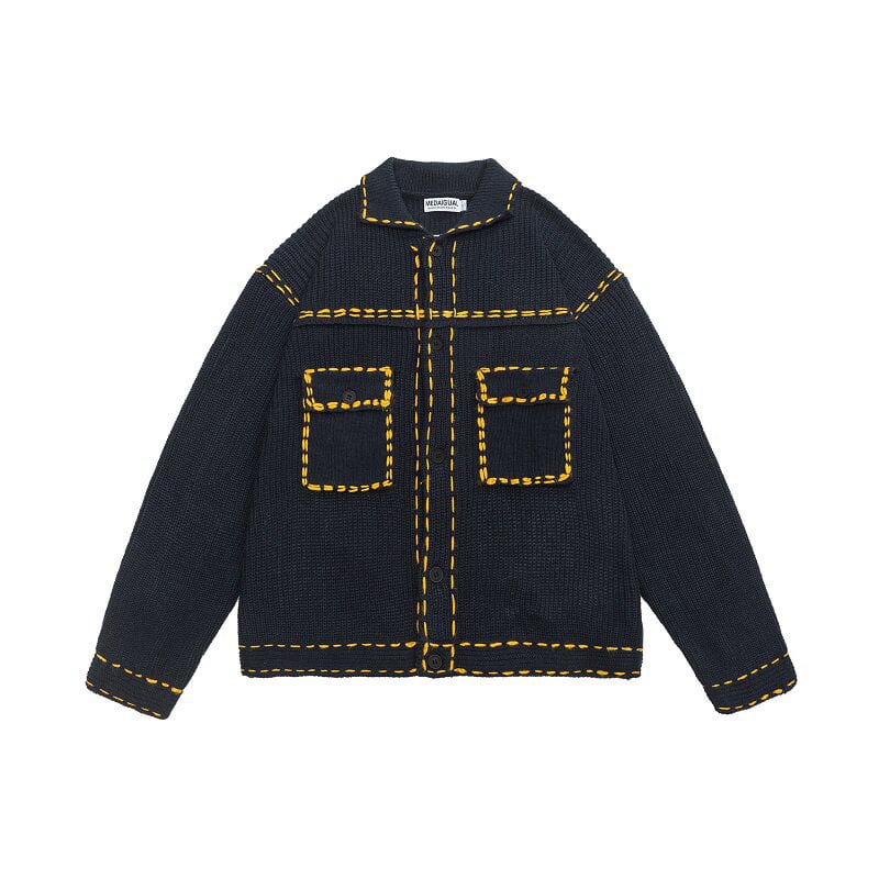 Medaigualステッチポケット付きニットカーディガン