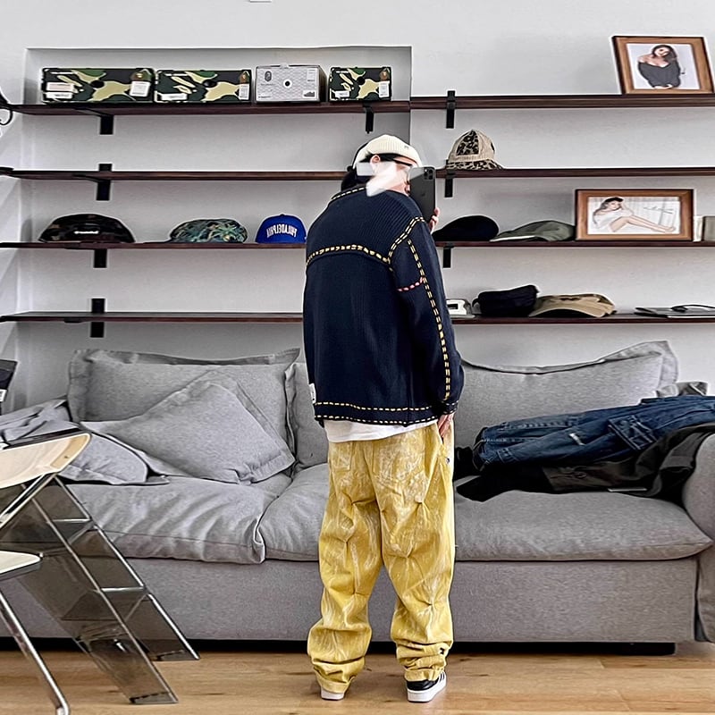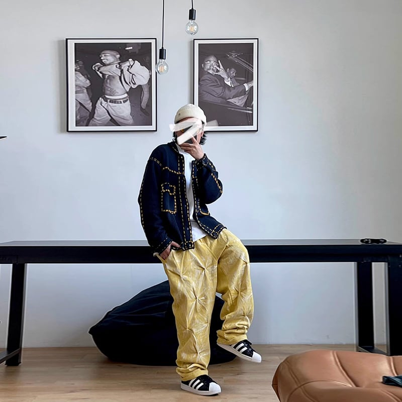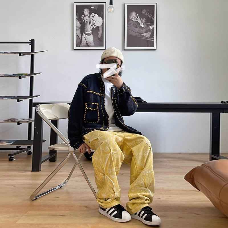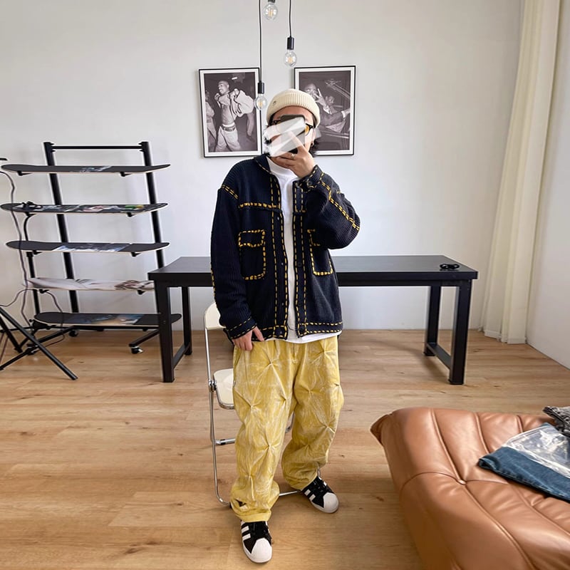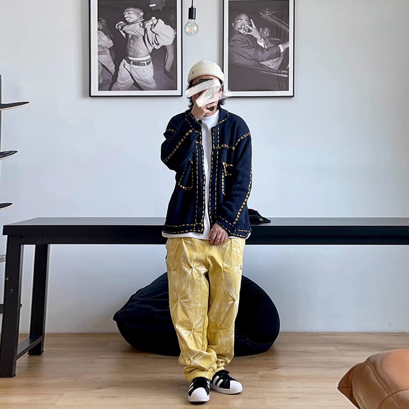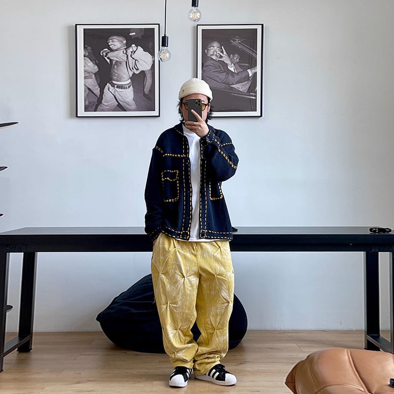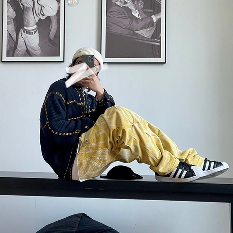 Medaigualステッチポケット付きニットカーディガン