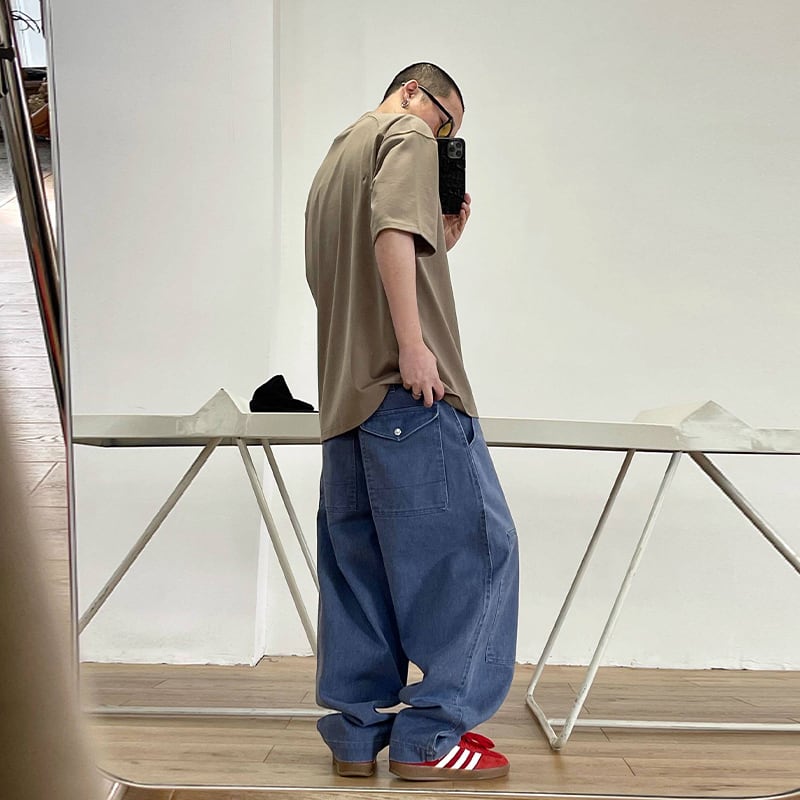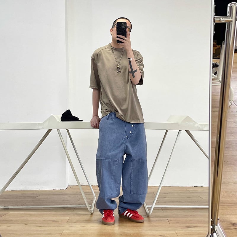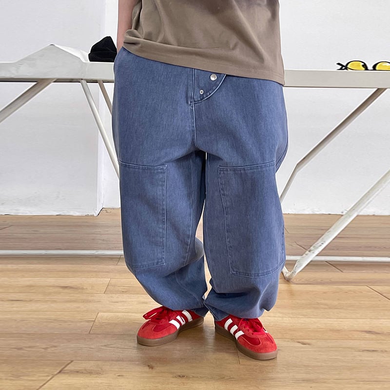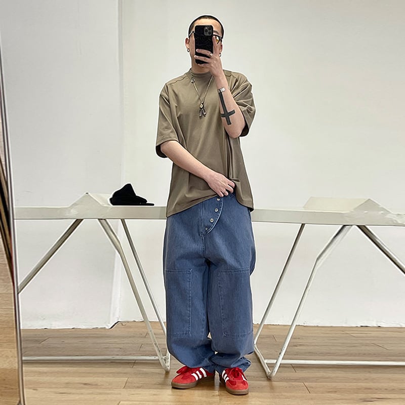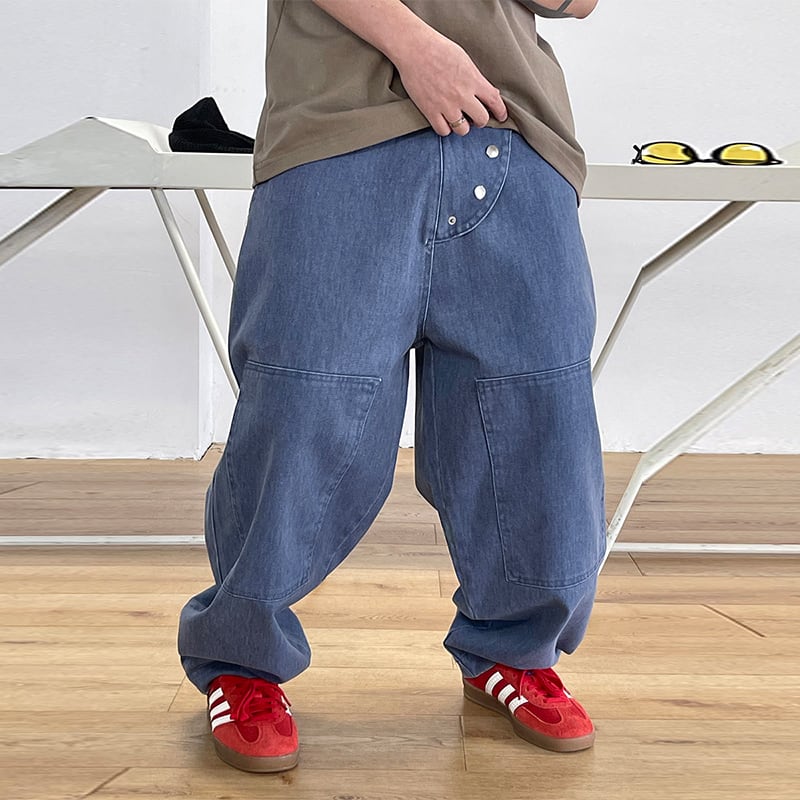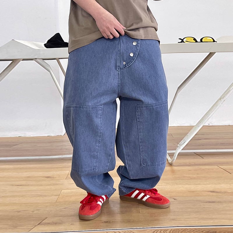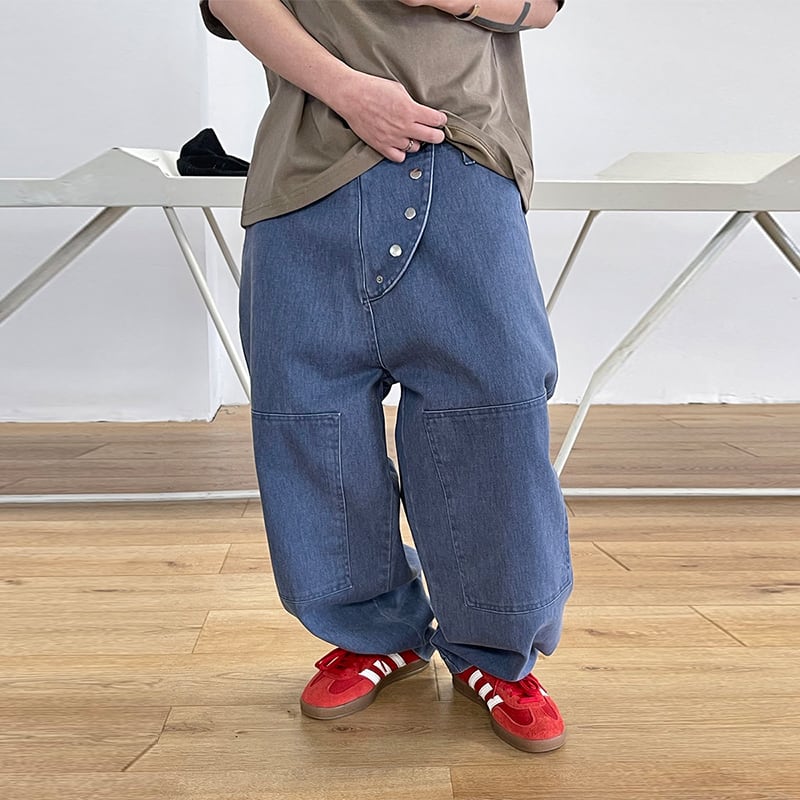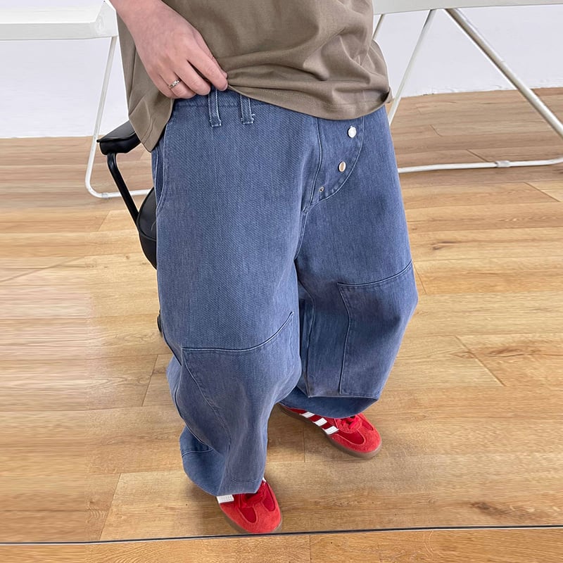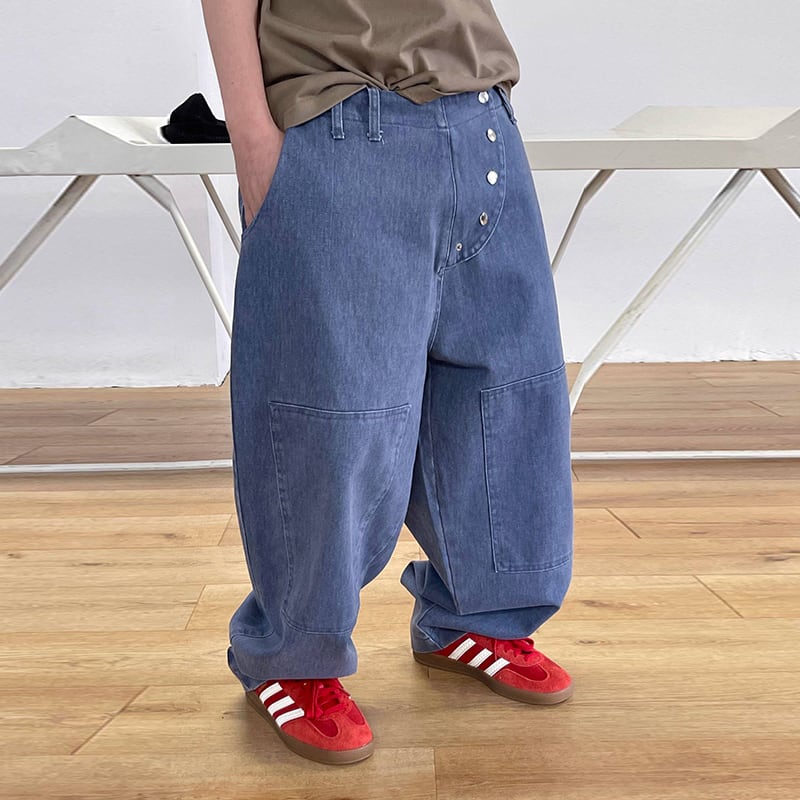 Medaigual斜めボタンデザインストリートワイドパンツ