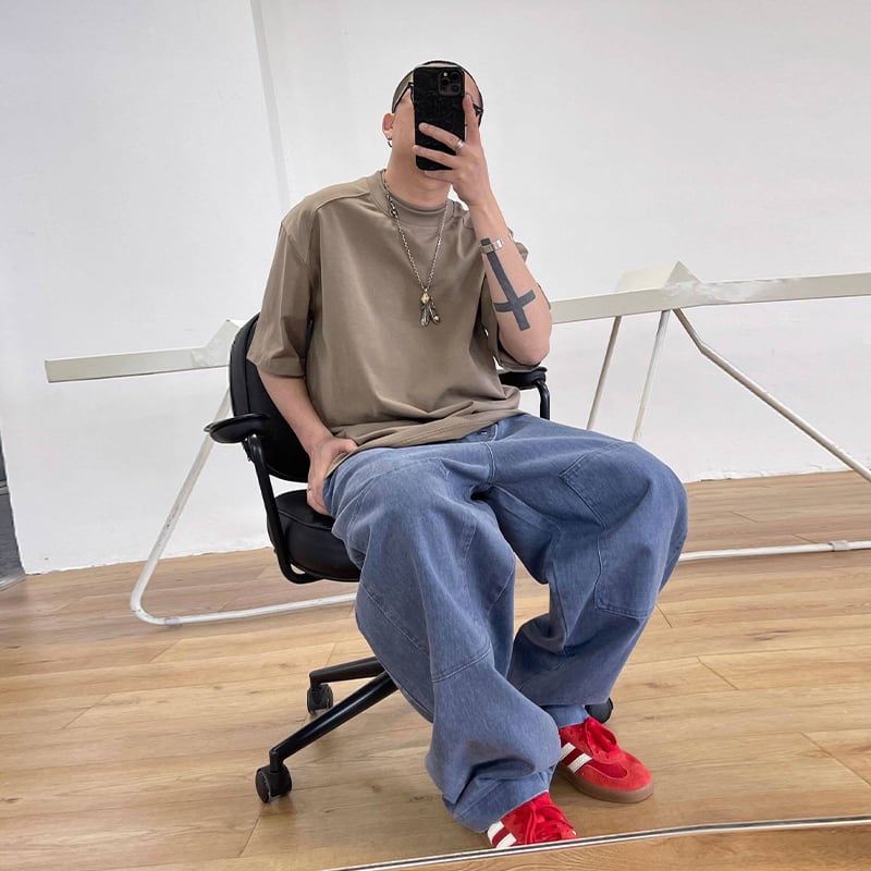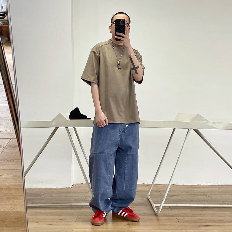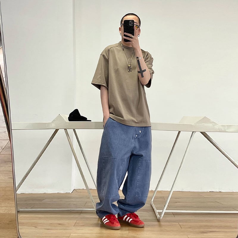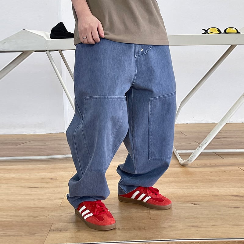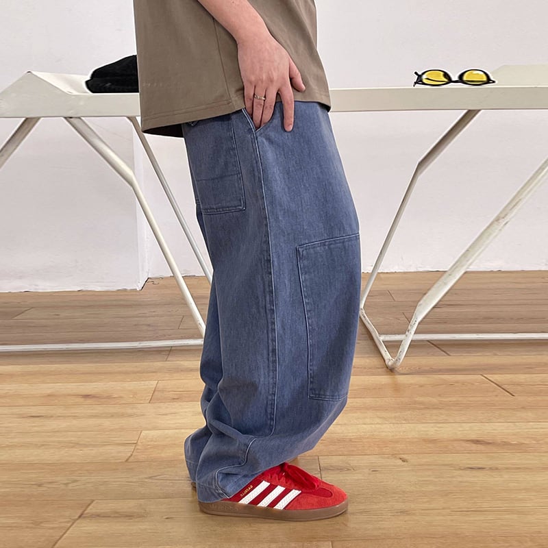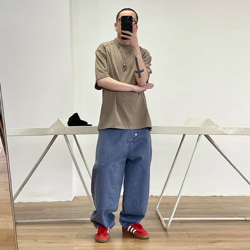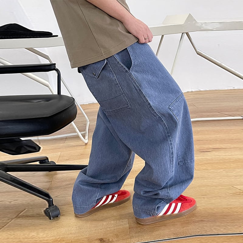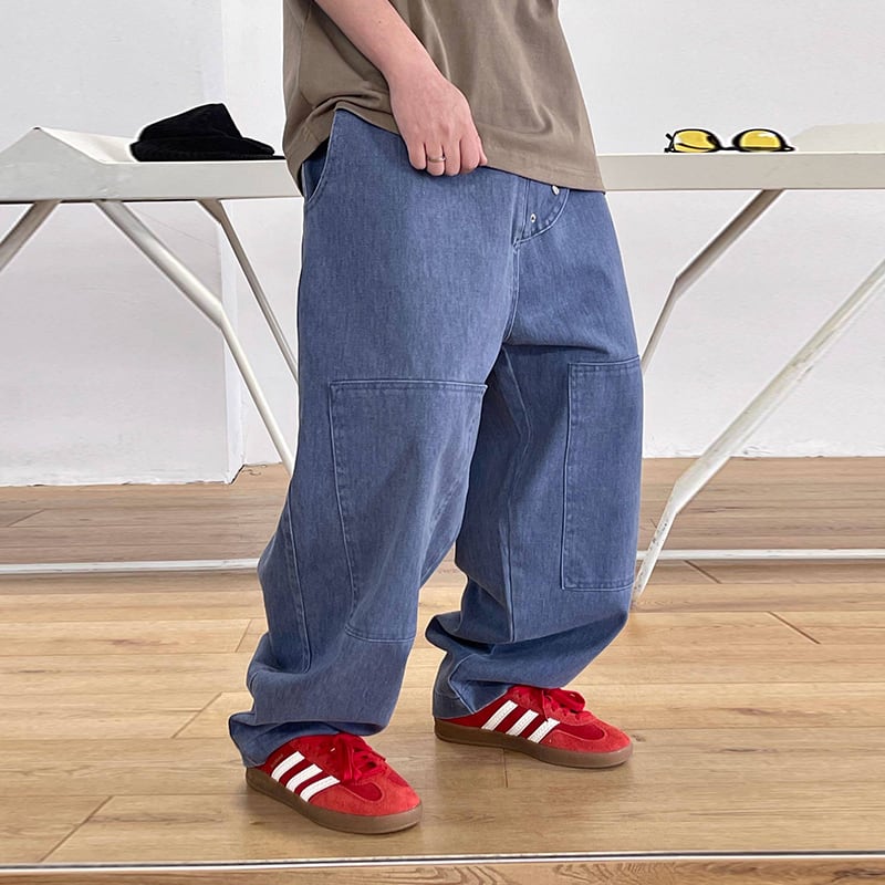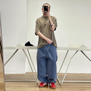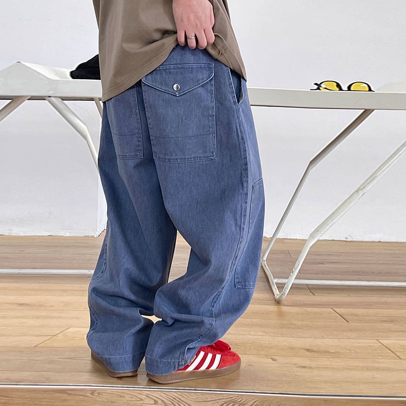 Medaigual斜めボタンデザインストリートワイドパンツ
